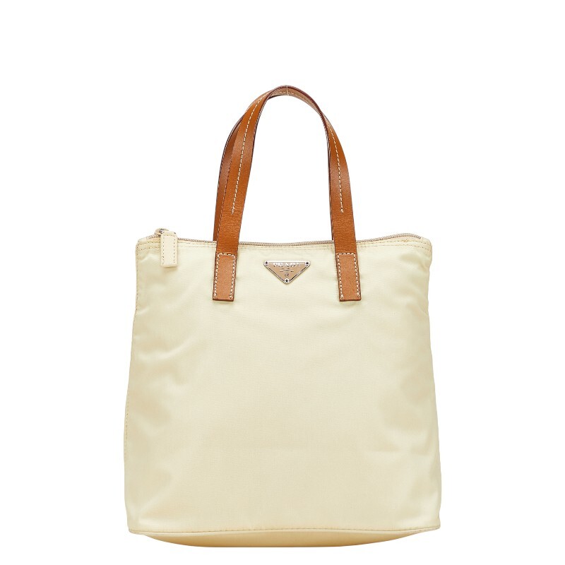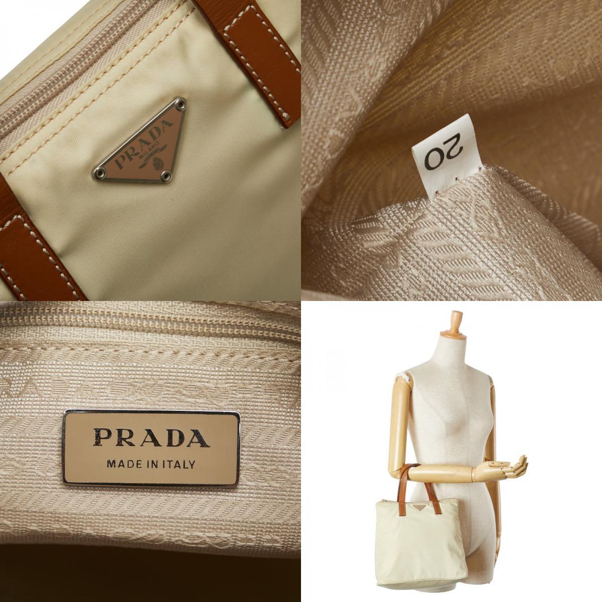 プラダ 三角ロゴプレート トートバッグ ベージュ ブラウン ナイロン レザー レディース PRADA 【中古】