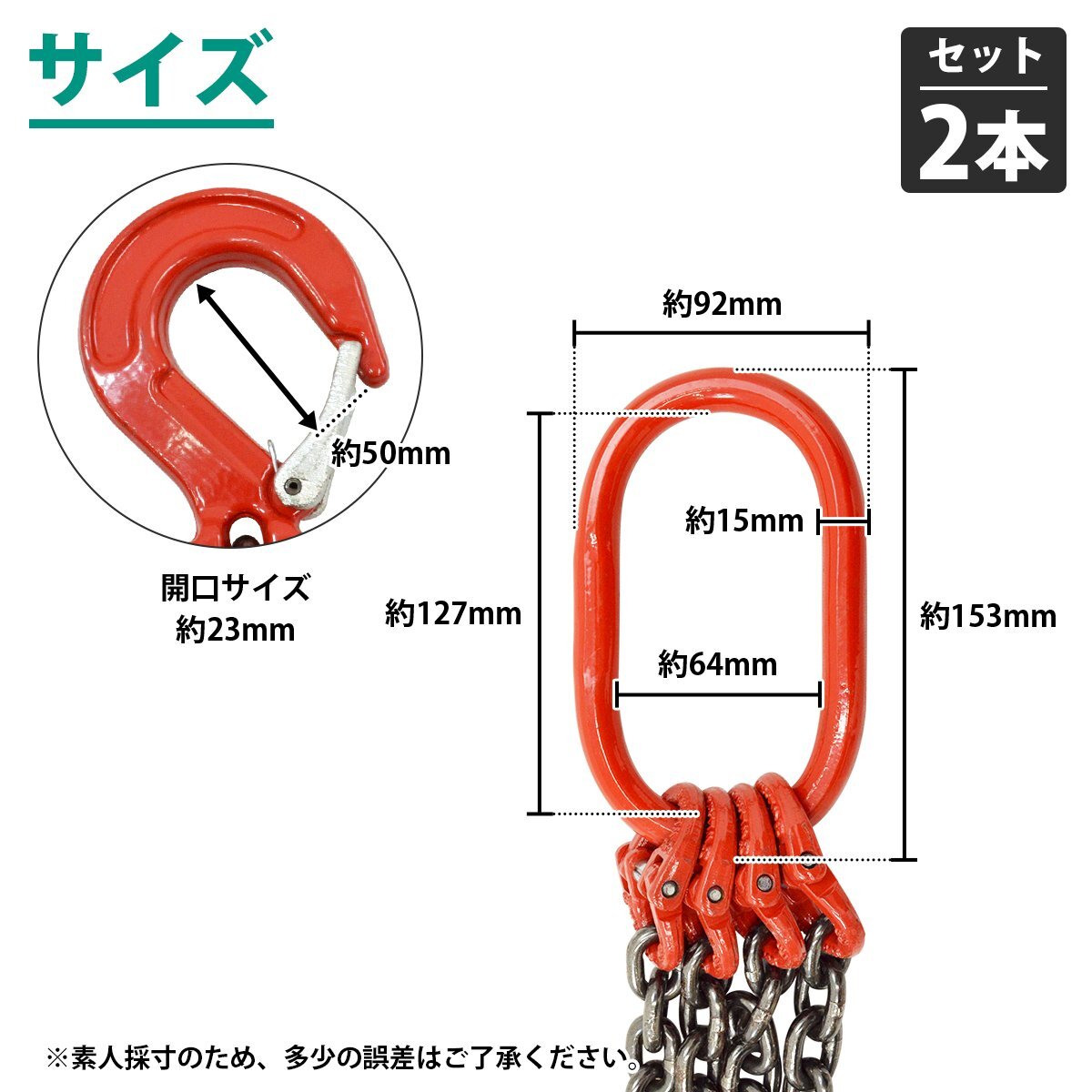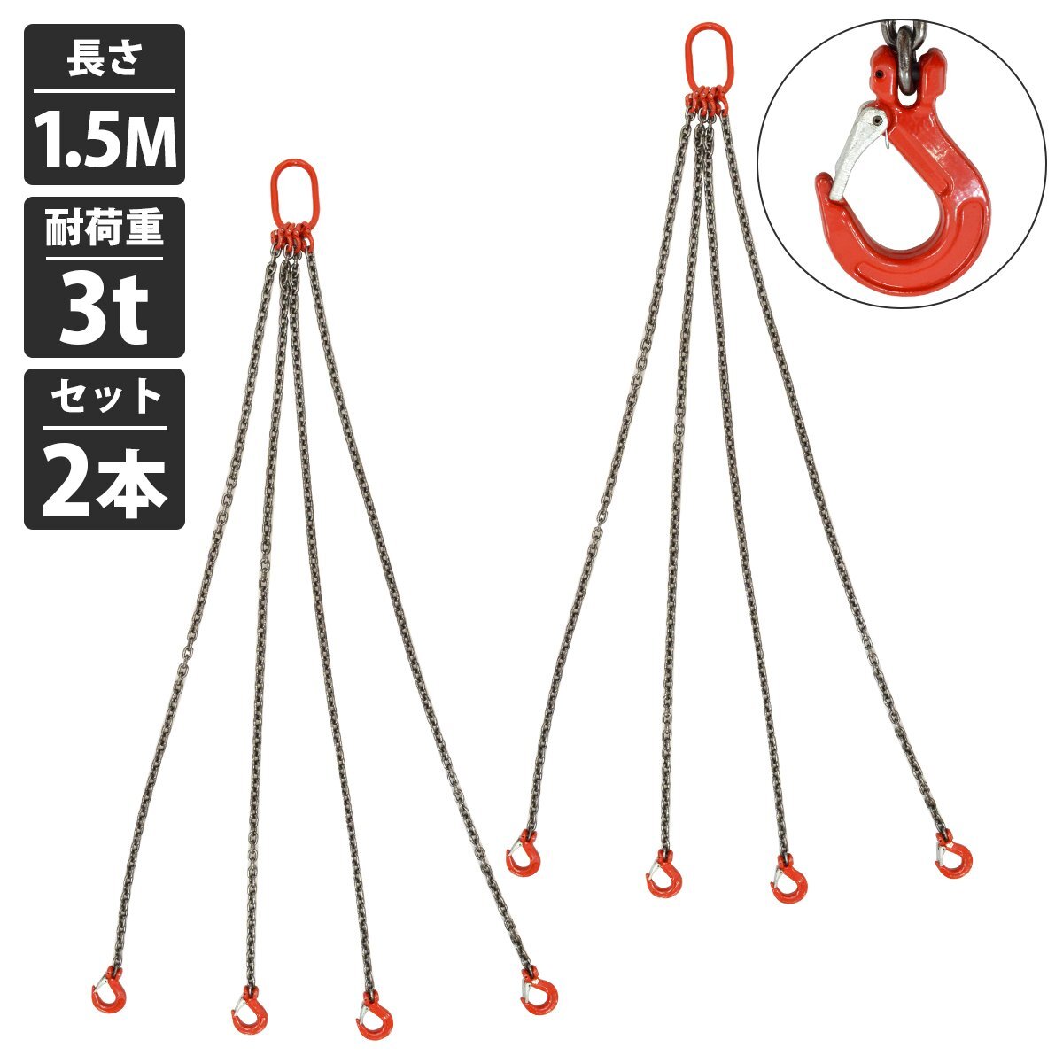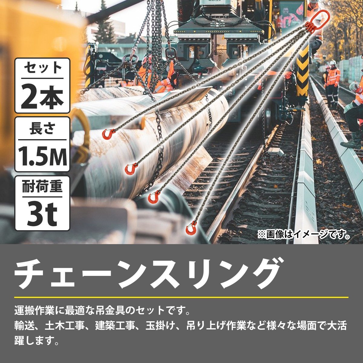[ 2本セット 3t 1.5M ]4本吊り チェーン スリング 吊り チェーン フックタイプ リング付き 径6mm 長さ 1.5m 耐荷重 3000kg