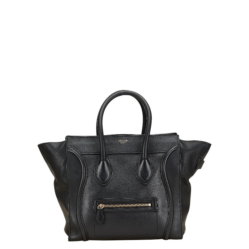 セリーヌ ラゲージ ミニショッパー ハンドバッグ ブラック レザー レディース CELINE 【中古】