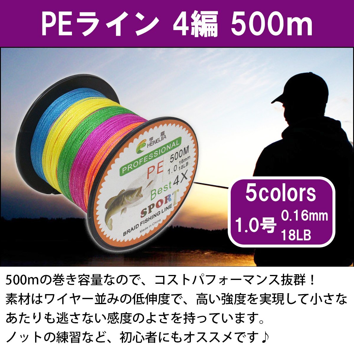 【新品即納】釣り糸 500m PEライン 1.0号/18lb 5色 マルチカラー MIX 投げ釣り 船釣り ジギング ルアー エギング タイラバ リール