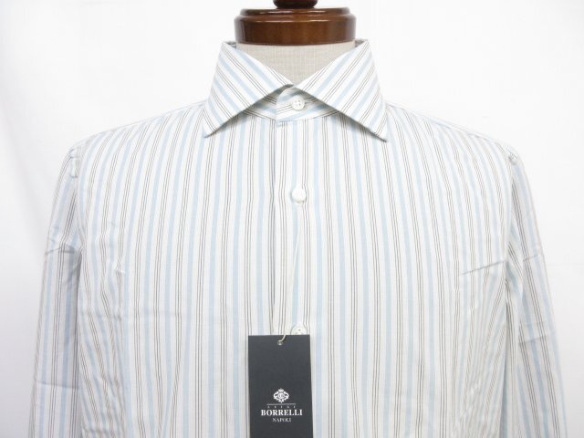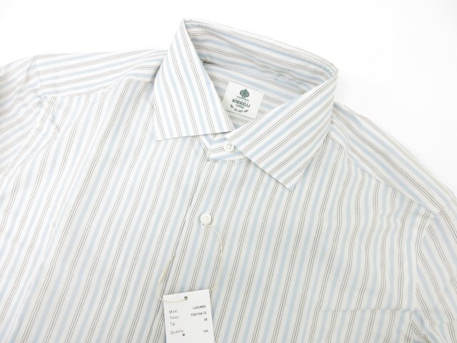 未使用【ルイジボレッリ LUIGI BORRELLI】 ワイドカラー マルチストライプ柄シャツ (メンズ) size39 マルチカラー イタリア製 ◯33MK4586◯