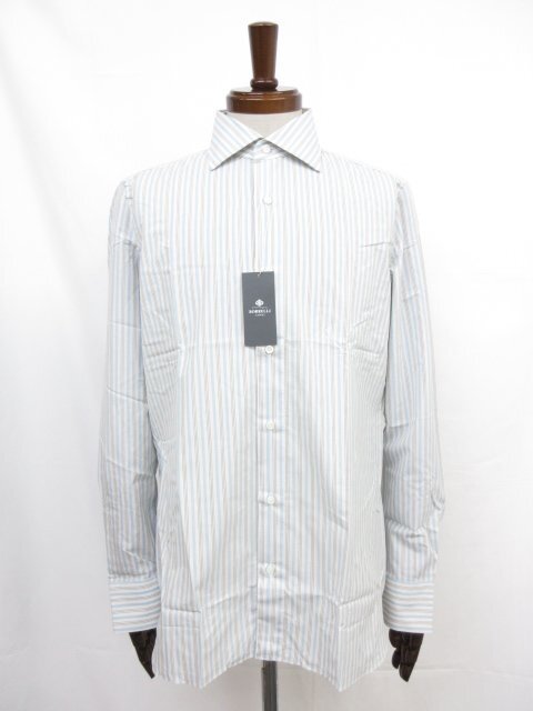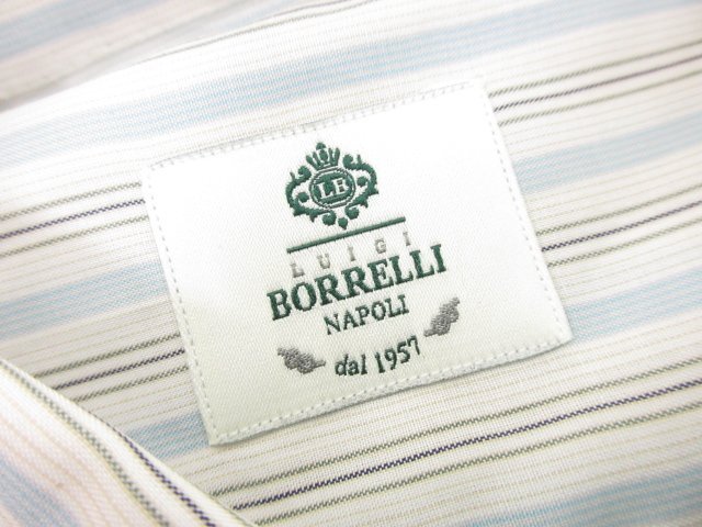 未使用【ルイジボレッリ LUIGI BORRELLI】 ワイドカラー マルチストライプ柄シャツ (メンズ) size39 マルチカラー イタリア製 ◯33MK4586◯