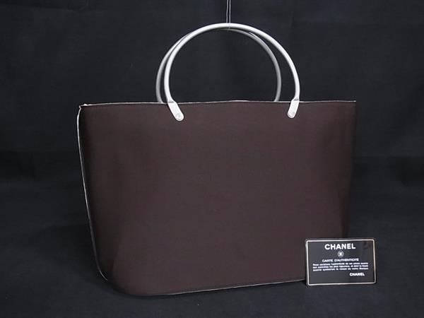 1円 ■美品■ CHANEL シャネル ココマーク ナイロンキャンバス ハンドバッグ トートバッグ レディース ブラウン系×グレー系 BQ1677