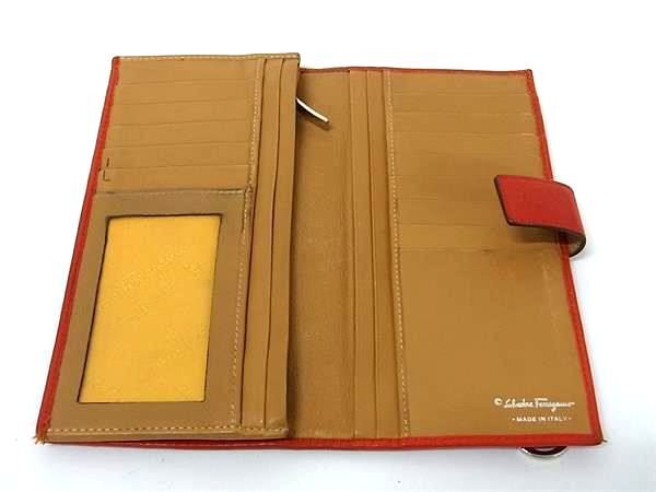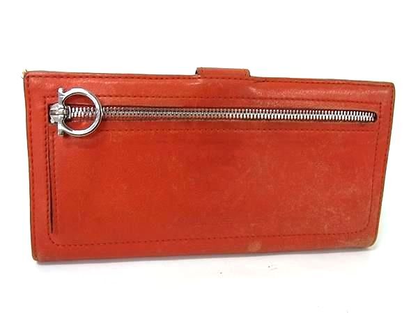 Salvatore Ferragamo フェラガモ ガンチーニ レザー 二つ折り 長財布 ウォレット 札入れ 小銭入れ レディース オレンジ系 DK4576