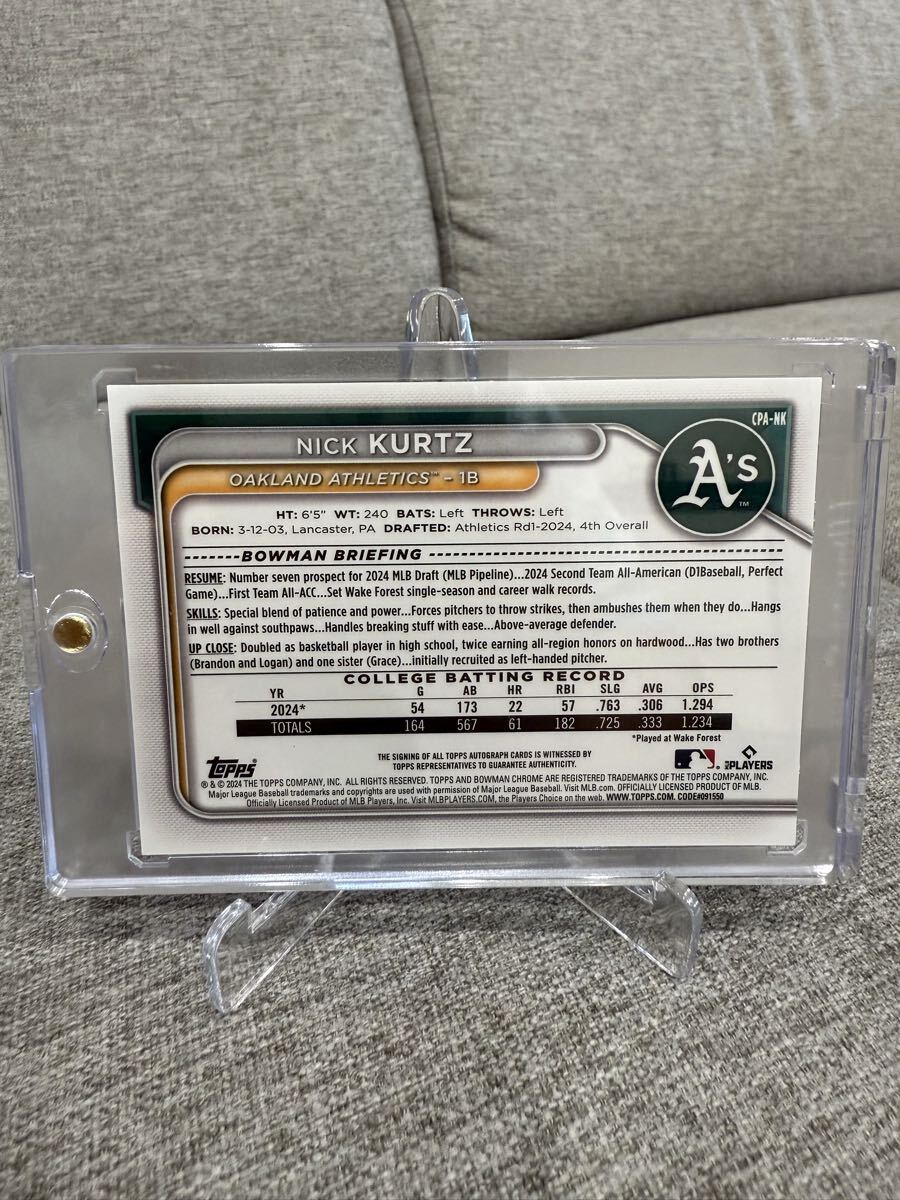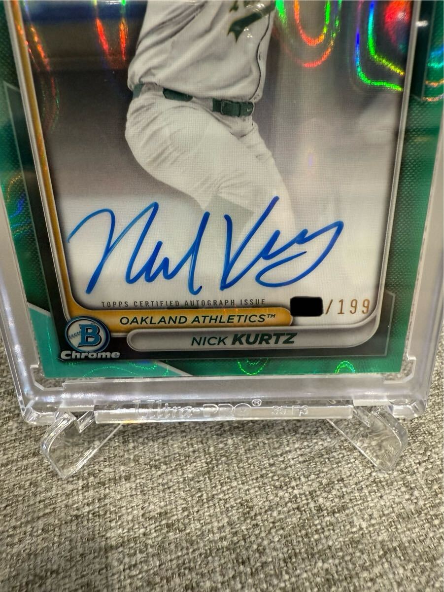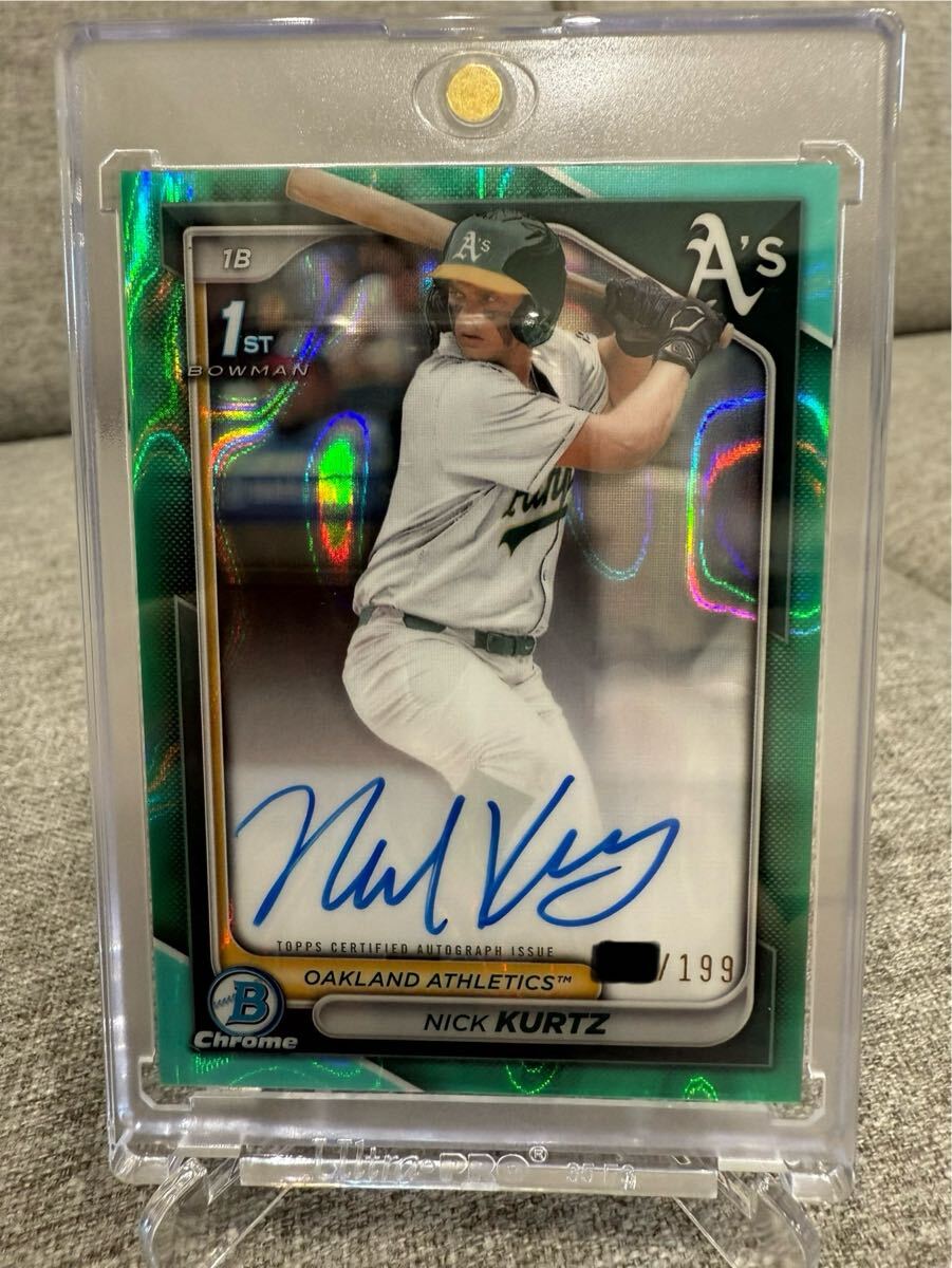 1試合に4HRを放つなどの活躍が目立ちア・リーグ新人王候補筆頭のニック・カーツ NICK KURTZ選手の初めてのオートグラフのカードとなった1st BOWMANです。