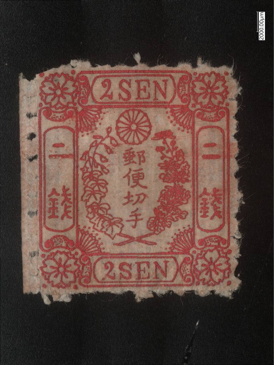 和紙紅桜二銭カナ無し タイプⅠ 明治5年(1872年)7月20日発行 未消印 ヒンジ