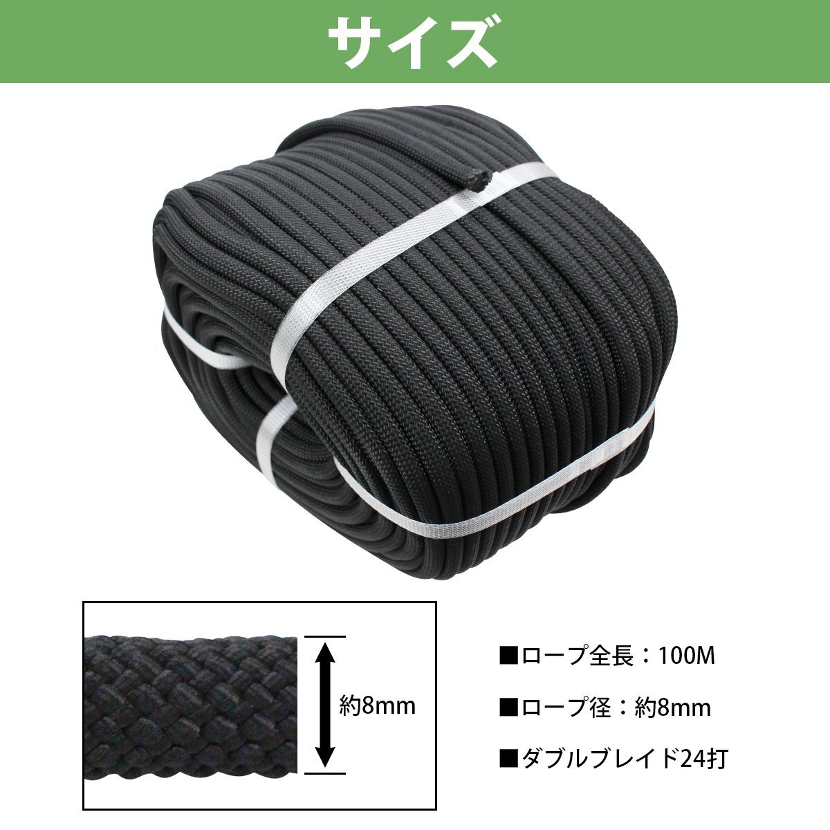 【新品即納】24打 8mm 100m 係留ロープ フェンダーロープ ダブルブレイド 黒/ブラック マリン ロープ 船 係船 ロール 8ミリ アイ加工無