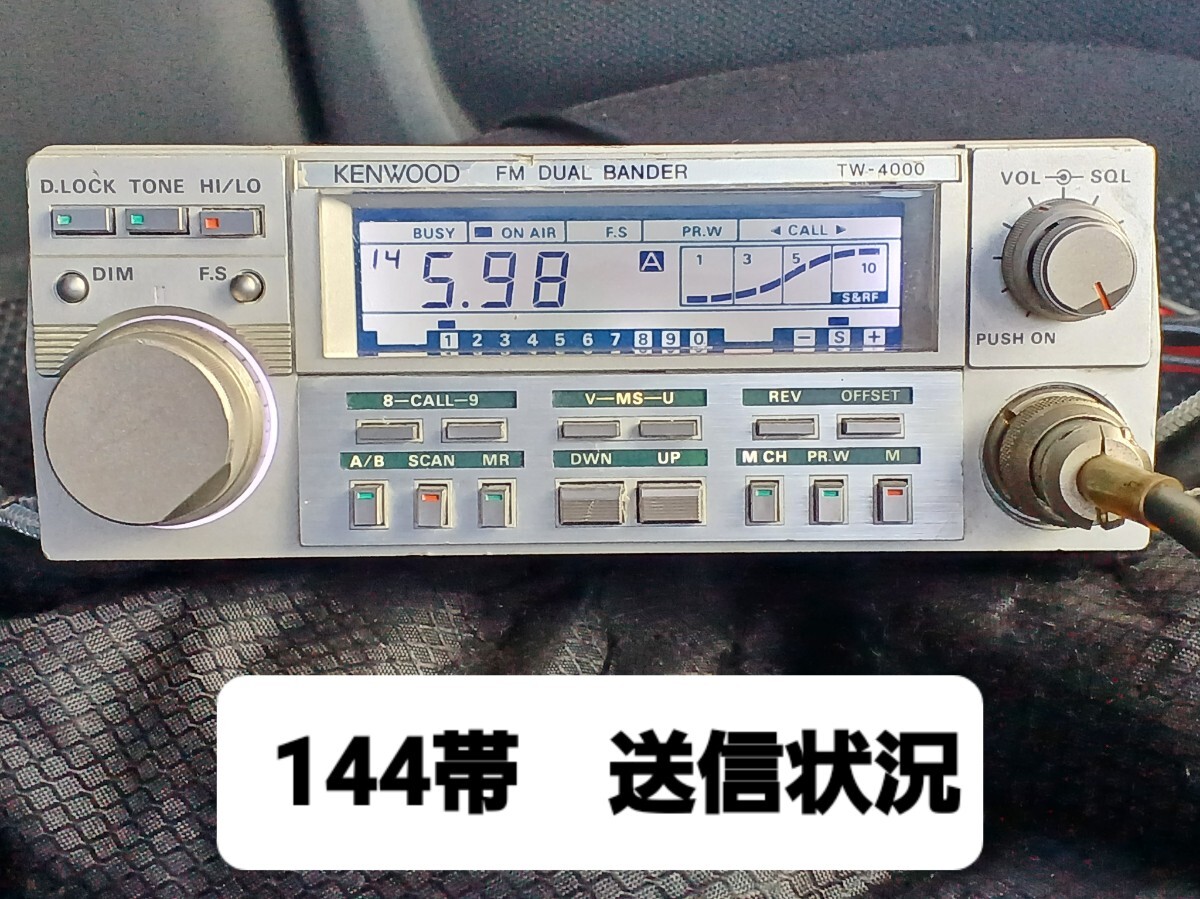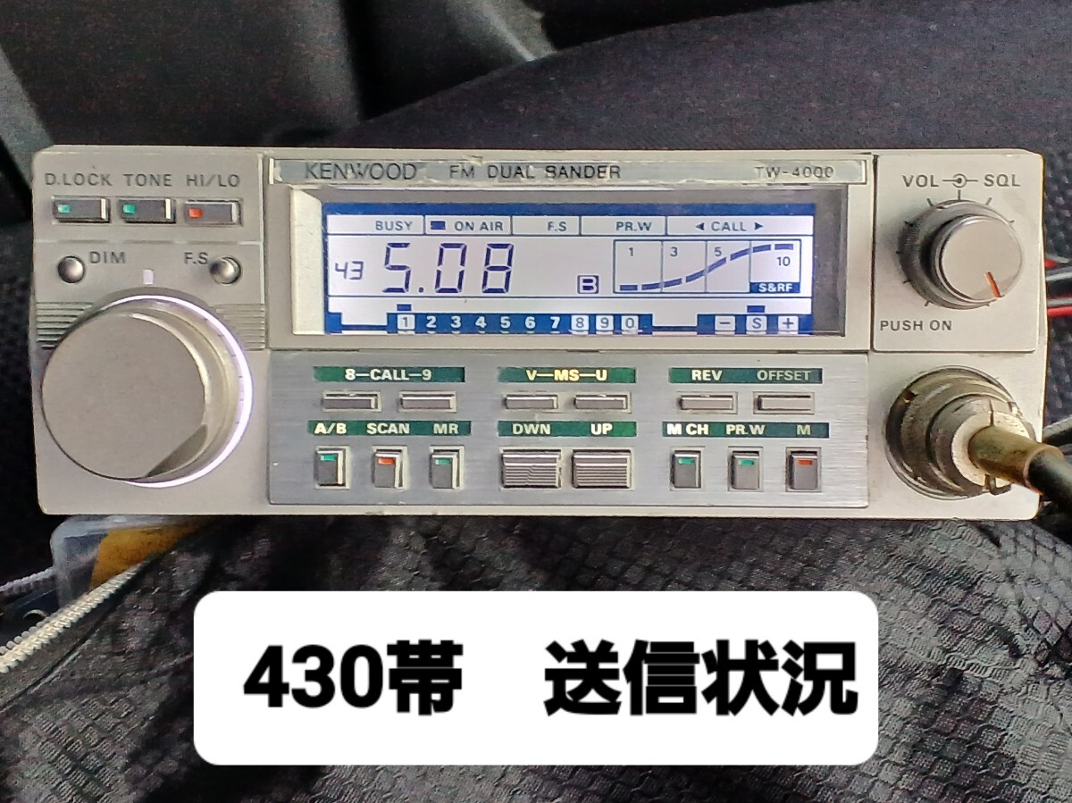 ケンウッドTWー4000 144/430 定格10Wです。144帯、ローカルにて送信、受信確認済み。430帯は、環境が無いため、鳴き合わせにて送信、受信確認済み。スケルチ、ボリューム良好です。LEDに変更しました。バックアップ電池交換しました。本体、マイク、ブラケットです。古い物なので、ノークレームにてお願いいたします。