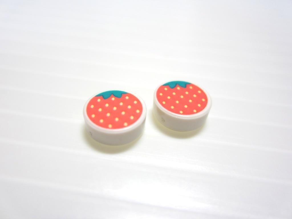 本品はかわいい丸い1×1プリントタイル2点(イチゴ)です。