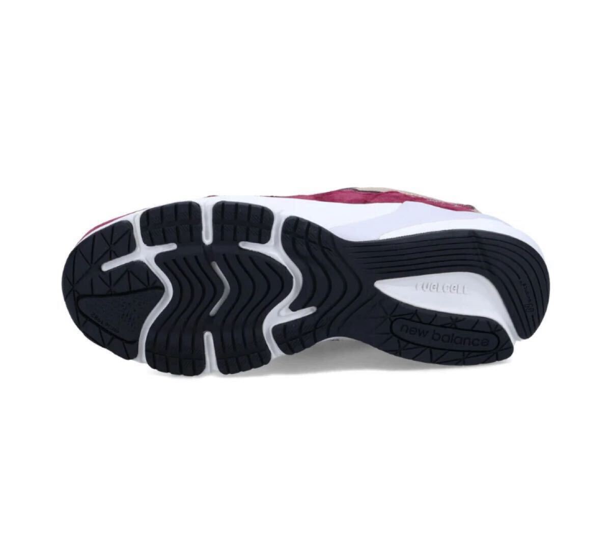 1982年、"1000点中990点"と自負するランニングシューズの初代"990"が誕生した。そこから時代のニーズやテクノロジーの進化と共に歩み、最高峰の履き心地を追求してチューニングを行なってきた。そして2023年にイノベーティブな進化を遂げたと言っても過言ではない、"990V6"がデビューを飾る。アッパーはミッドフットサドルを無くして、より柔らかく足なじみするように設計。そして最大の特徴は、最新鋭のランニングシューズに用いられる、反発弾性、軽量性に優れた“FUELCELL(フューエルセル)”をミッドソールに搭載。足裏を優しく包み込むようなライド感を実現させ、長時間履いていてもストレスを感じさせない仕上がりに。今回はバーガンディで覆ったシーズナルカラーが登場。アッパーはピッグスキンスエードとシンセティックレザー、メッシュの組み合わせにより構成。芳香なワインのようなバーガンディ、そこにブラウンとベージュを重ねることで深みを出した。そしてサイドのNロゴはホワイトで縁取りブランディング。大人っぽい仕上がりが魅力のカラーリングとなっている。