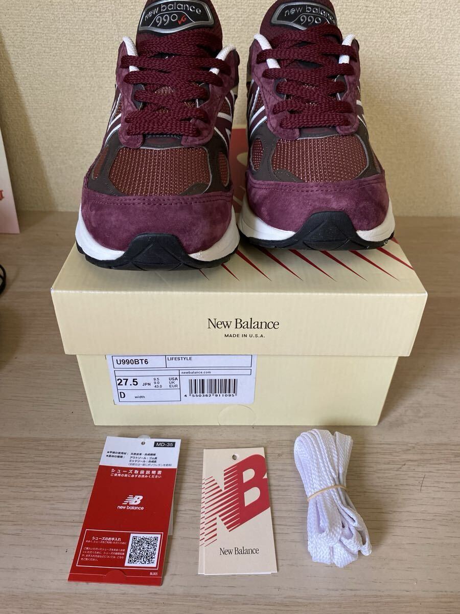 希少 箱替紐完備 1円スタート!これからの季節に最適解 New Balance 990V6 Burgundy 990BT6 ニューバランス バーガンディ US9 JP27.5