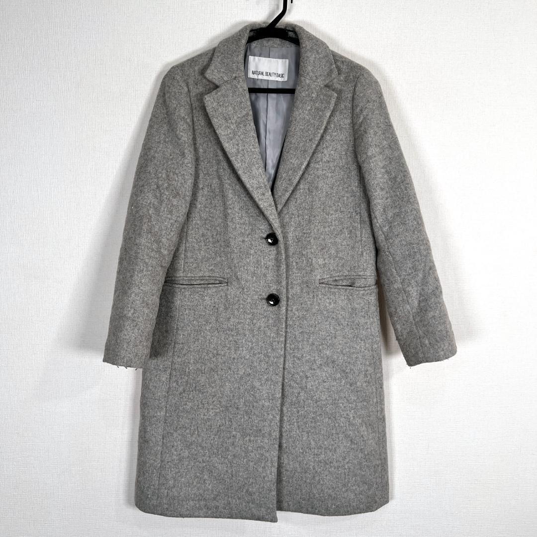 【NATURAL BEAUTY BASIC】ナチュラルビューティーベーシック グレー ロングコート アウター ジャケット レディース Sサイズ【c006】