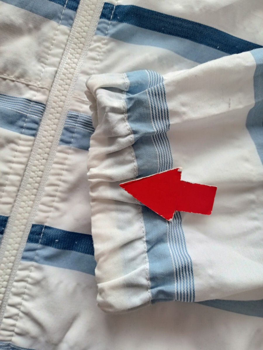 少し着用感と所々毛玉、腹部に細かな汚れ複数と左袖口に薄い黄ばみ、タグに記名あります。