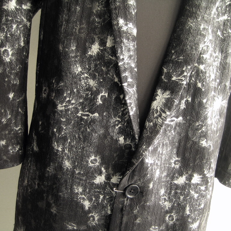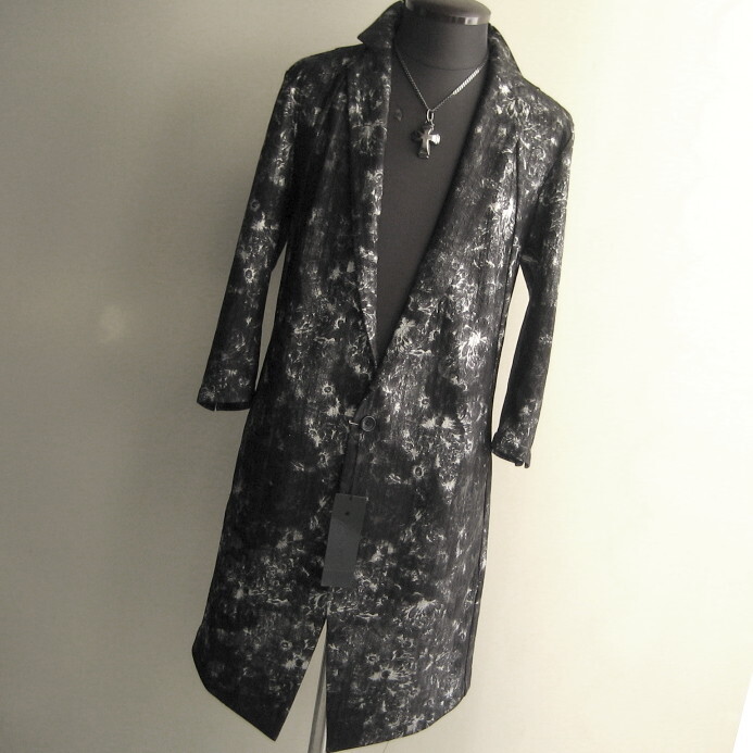 2.7万 新品 L トルネードマート フラワーフォイルタックストライプ7分袖チェスター ブラック サンプル 259