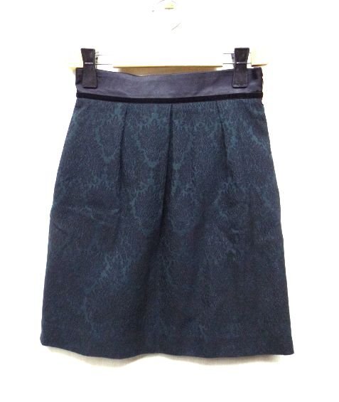 UNTITLED /アンタイトル ★グリーン×ブラック柄 ミニスカート 0サイズ 【中古】【美品】K221111T-04-H1