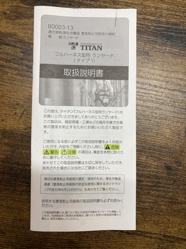 TITAN タイタン ■商品名 リフロ ハーネス用ランヤード ■型番 HL-MR |