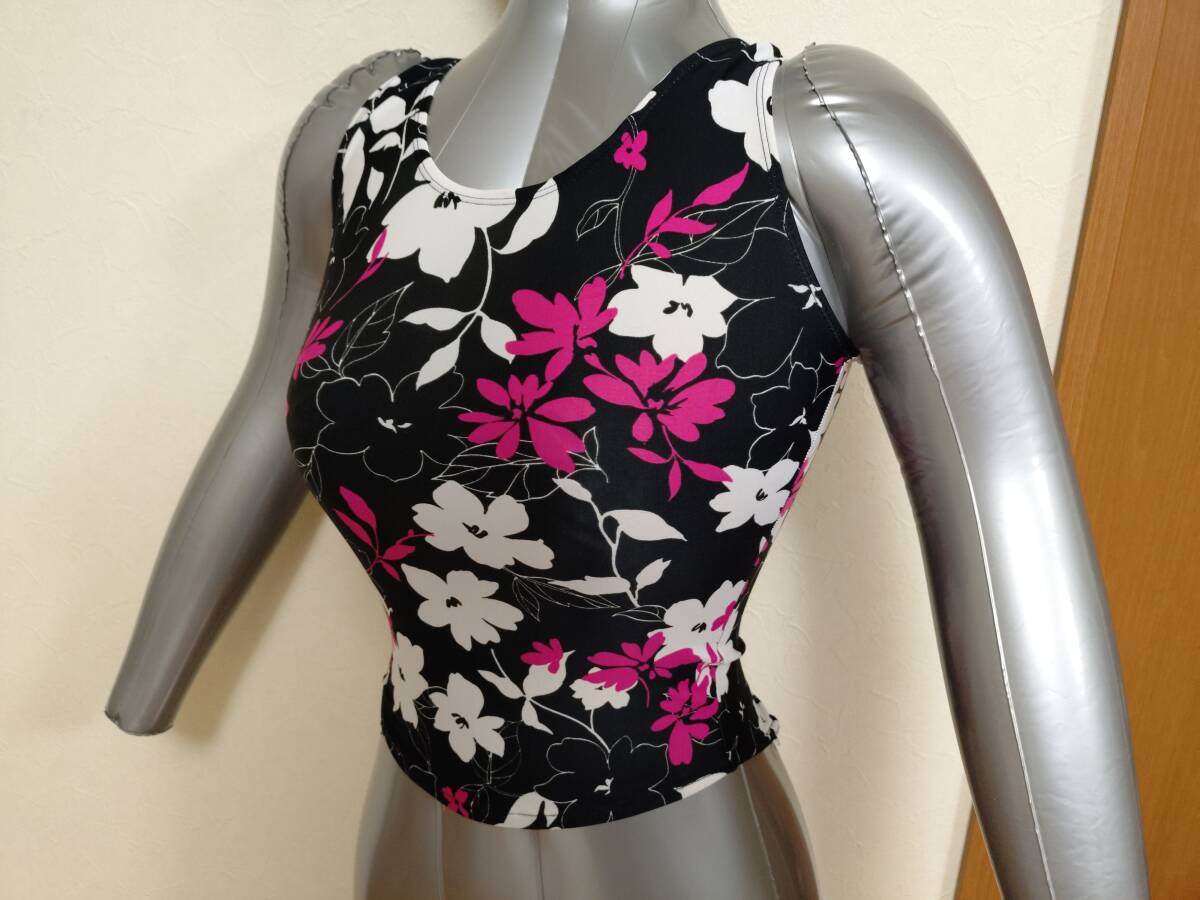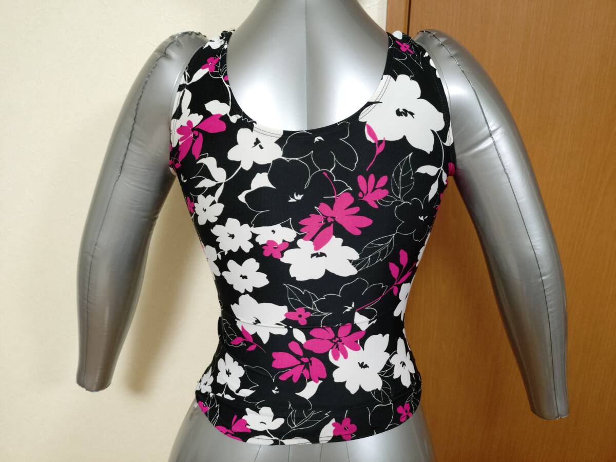 ササキスポーツ 女子新体操 器械体操 バレエ ダンス レオタードトップス 練習着 黒/花柄 サイズS 記名