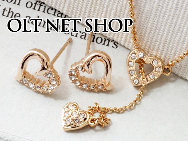 ★セット★ K18GP CZダイヤ ハートラリアット ネックレス&ピアス