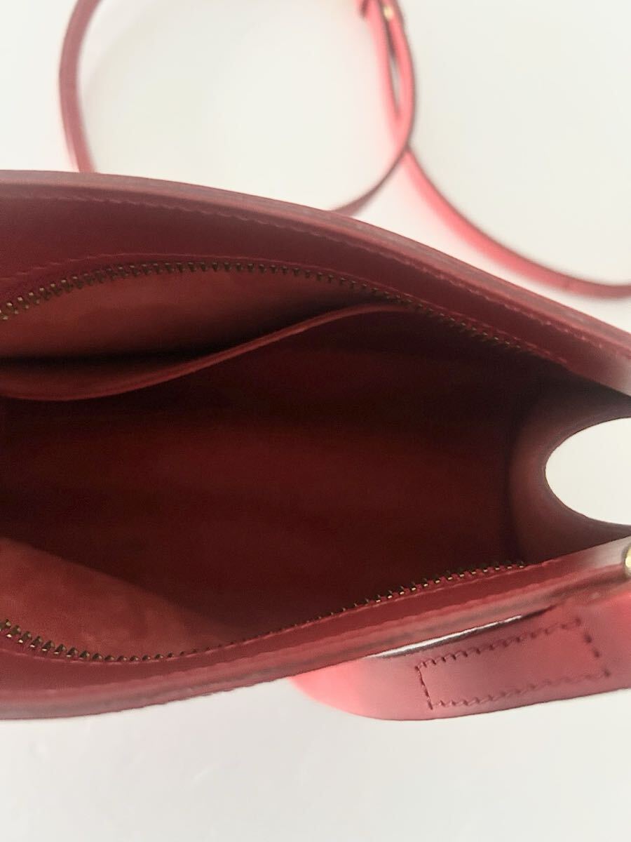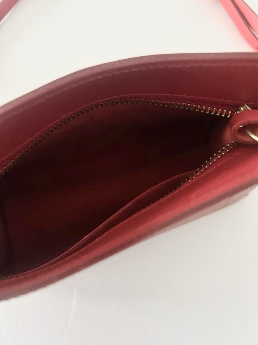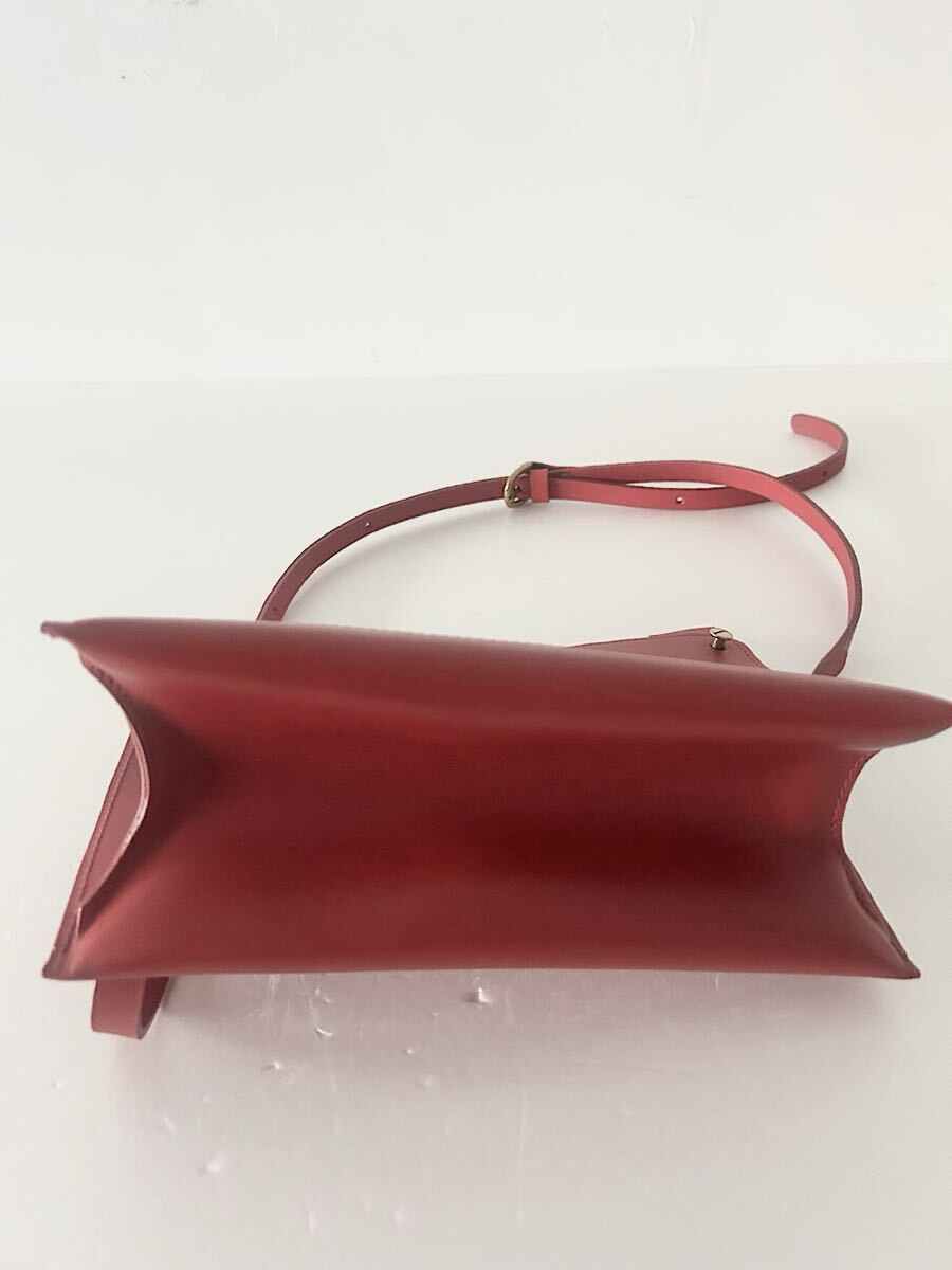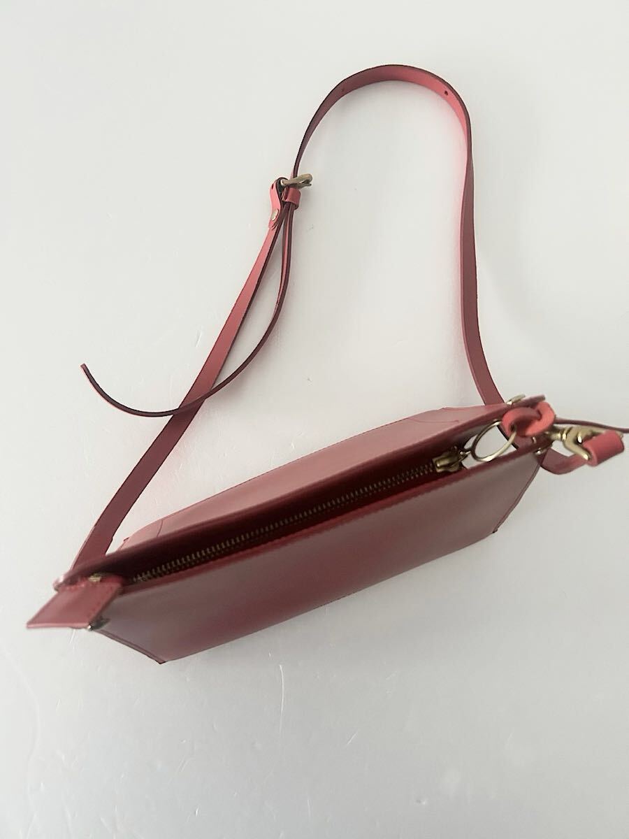カラーはスカーレット(あざやかな黄みの赤色)で牛革素材のショルダーバッグです。