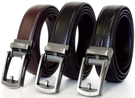 即決可@新品牛革ラチェット式ベルト3本組黒・茶・黒(クロコ型押し) | ||||||||||||