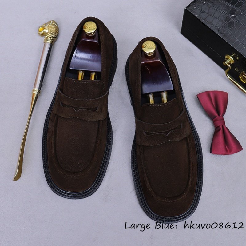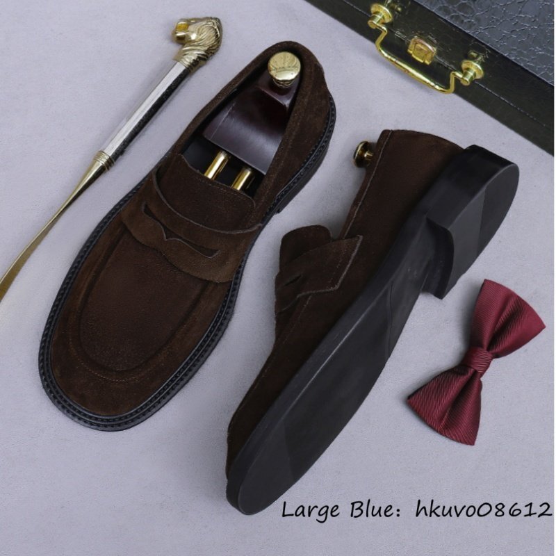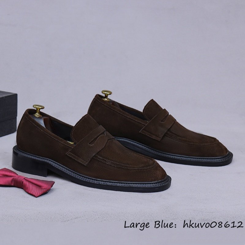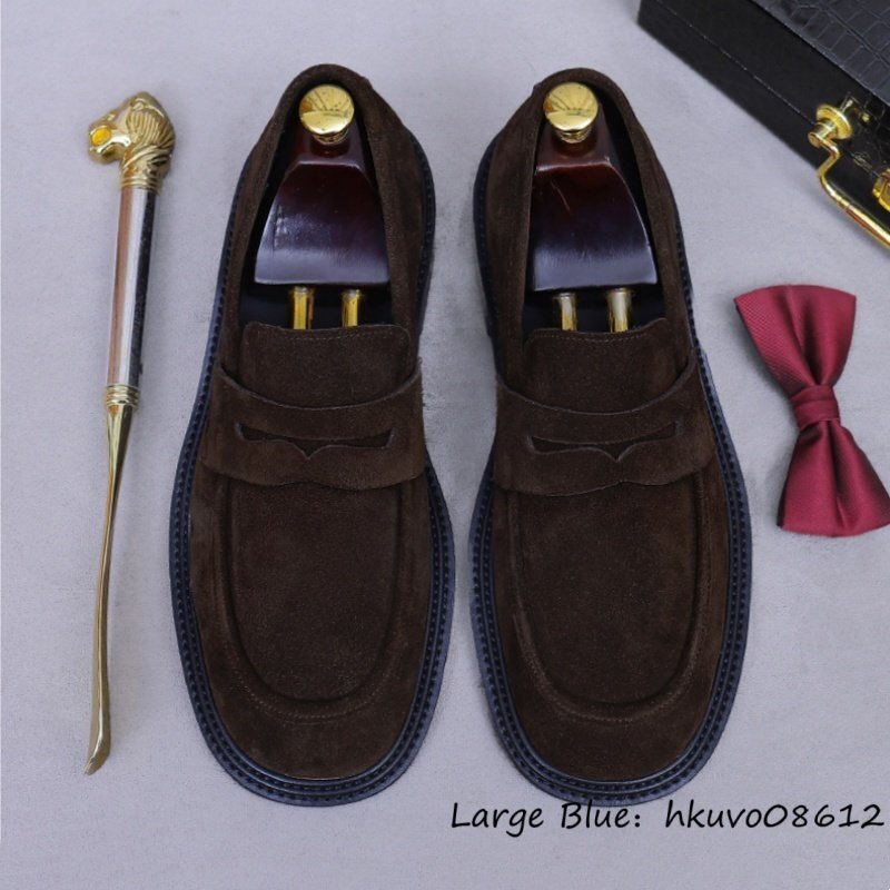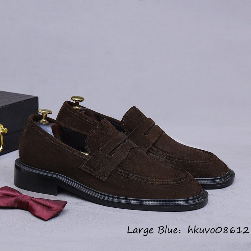 定価10万■最高級 スエード革 ローファー ビジネスシューズ 職人手作り 本革 レザーシューズ メンズ 牛革 スリッポン 革靴 珈琲色 24.5cm