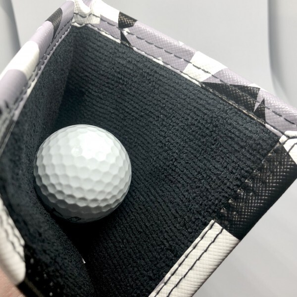 お洒落なカモフラージュ柄の外側生地は、PUレザーで光沢がありしっかりしているので普通のタオルよりもヘタれにくいです。摩擦等によるキズに強く、防水性があるので雨のラウンドでも水が染み込みにくくなっています。