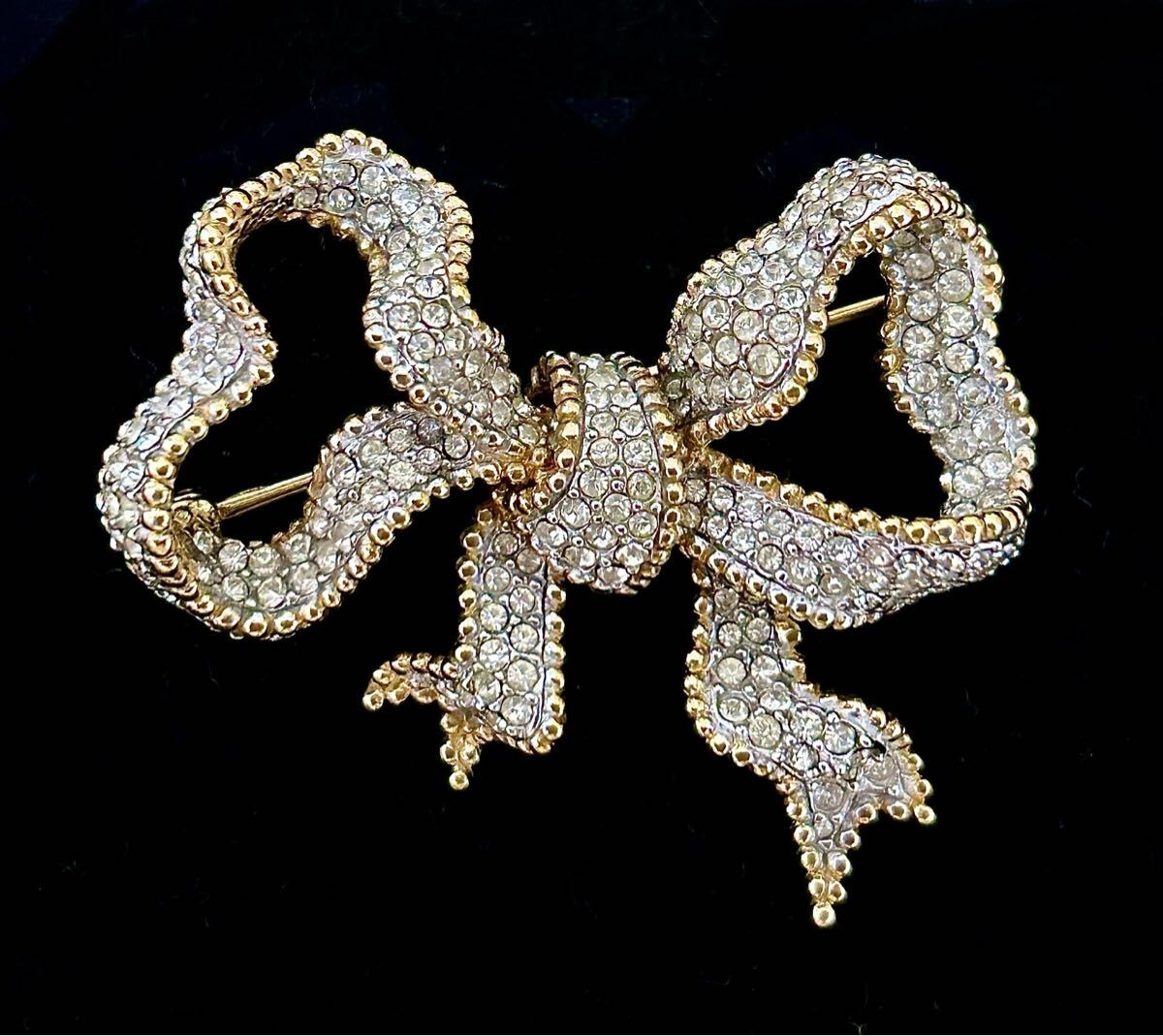 クリアカラーのラインストーンが全面に使われており、とても美しいブローチです。