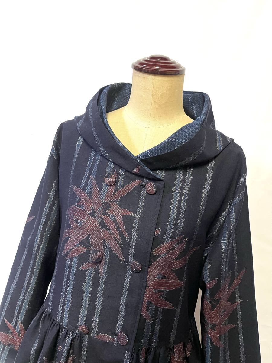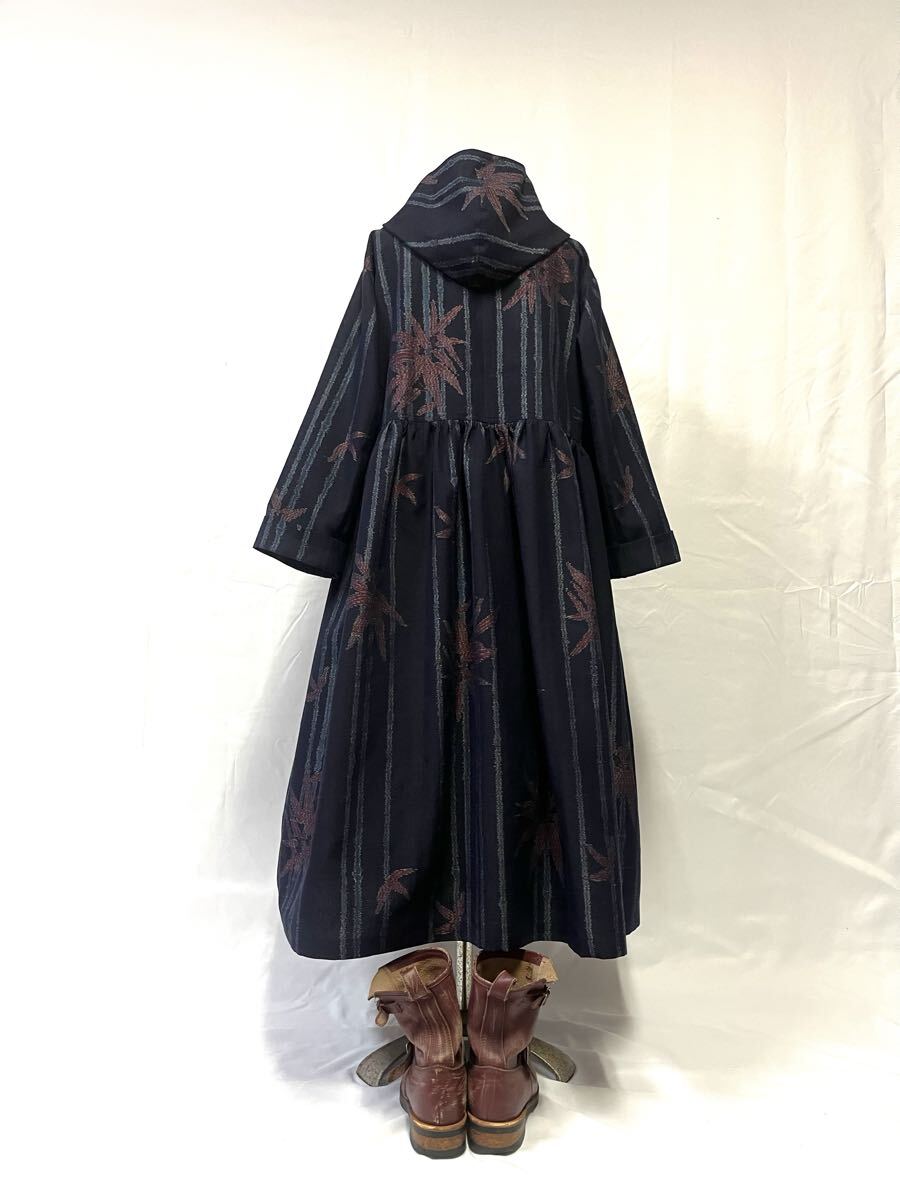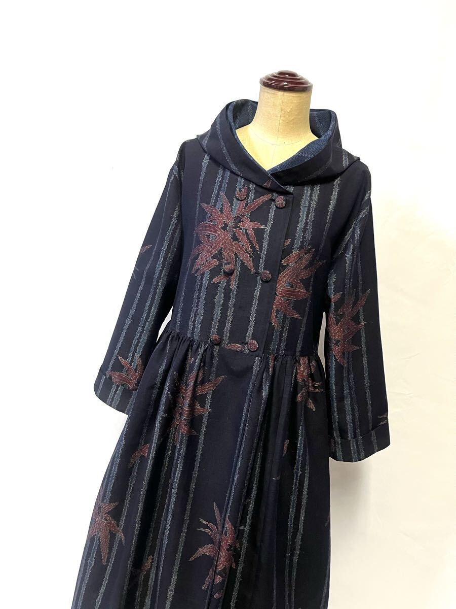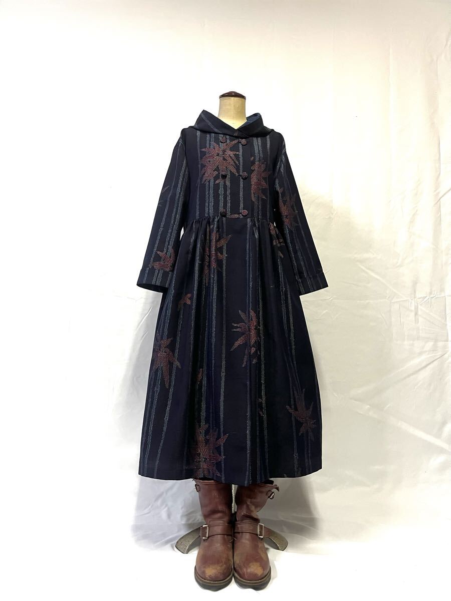 未使用反物からフード付き、ダブルボタンのワンピースを作りました。
