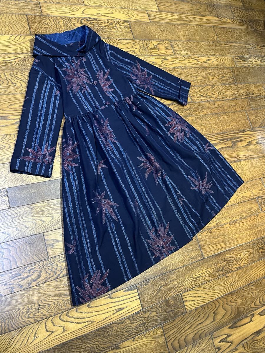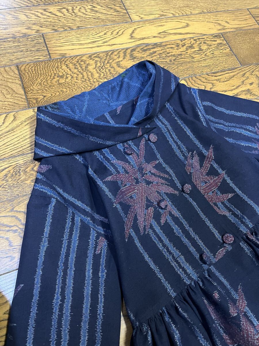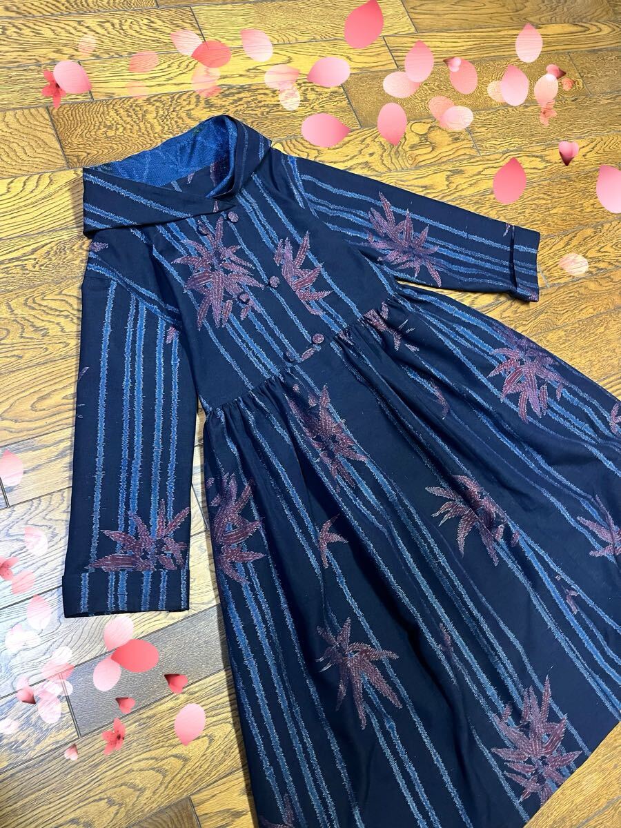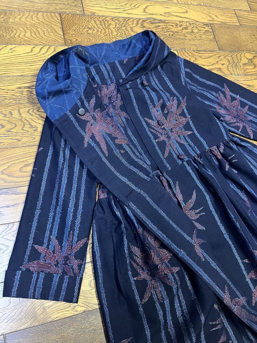 未使用反物からフード付き、ダブルボタンのワンピースを作りました。