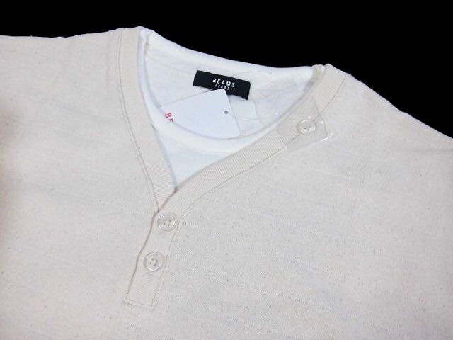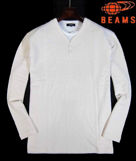 J土10247新品▼ ビームス 【 L 】 ナチュラル系 BEAMS フェイクレイヤード ヘンリーネック 長袖カットソー ロンT 長袖Tシャツ BEAMS 重ね着