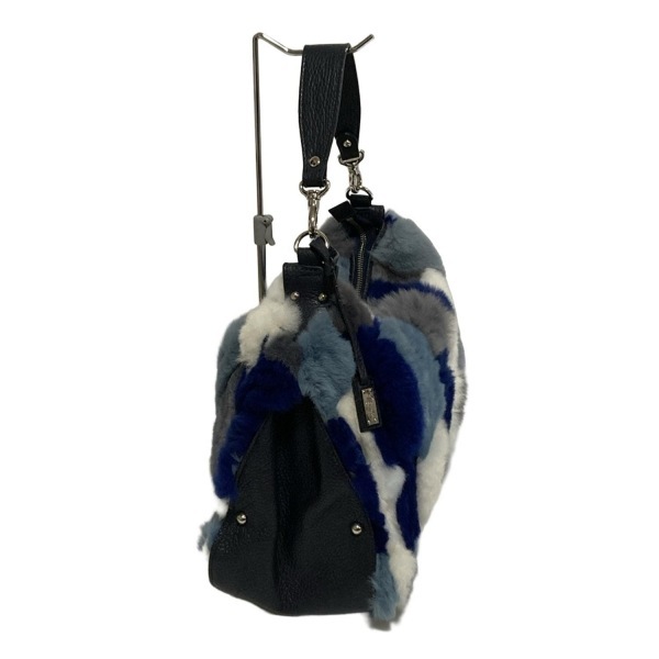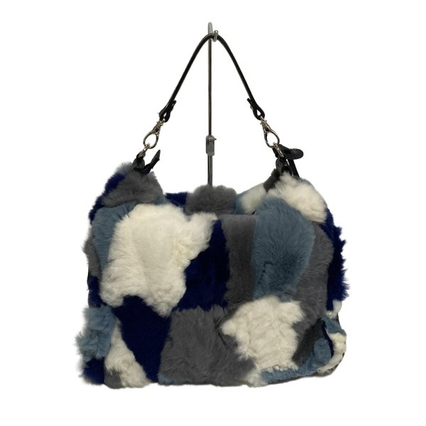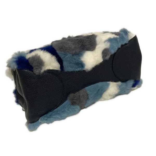 ギンザカネマツ GINZA Kanematsu ハンドバッグ - レザー、ラビット ダークグレー×ブルー×マルチ ハンドル取り外し可 バッグ