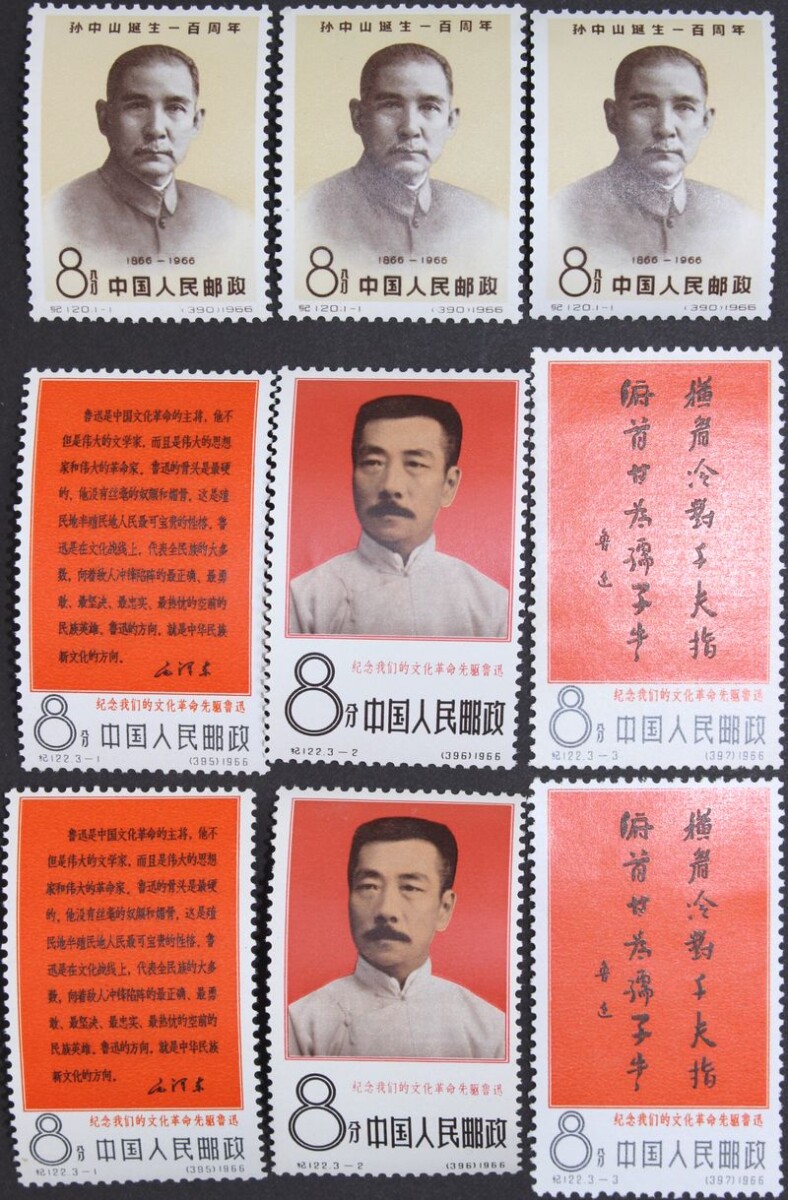 ● 商品・・・未使用 中国切手 紀122 文化革命の先駆者・魯迅 3種完 ×2 紀120 孫中山誕生100周年 1種完 ×3