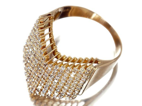 豪華V字デザインに天然ダイヤモンド総計1.0ctを素敵に宝飾した、高級K18YGリングを1円から特別大放出致します!