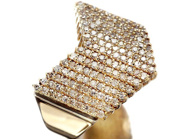V字の正面全体にダイヤモンドがパヴェセッティングされ、指元を豪華に輝かせています!