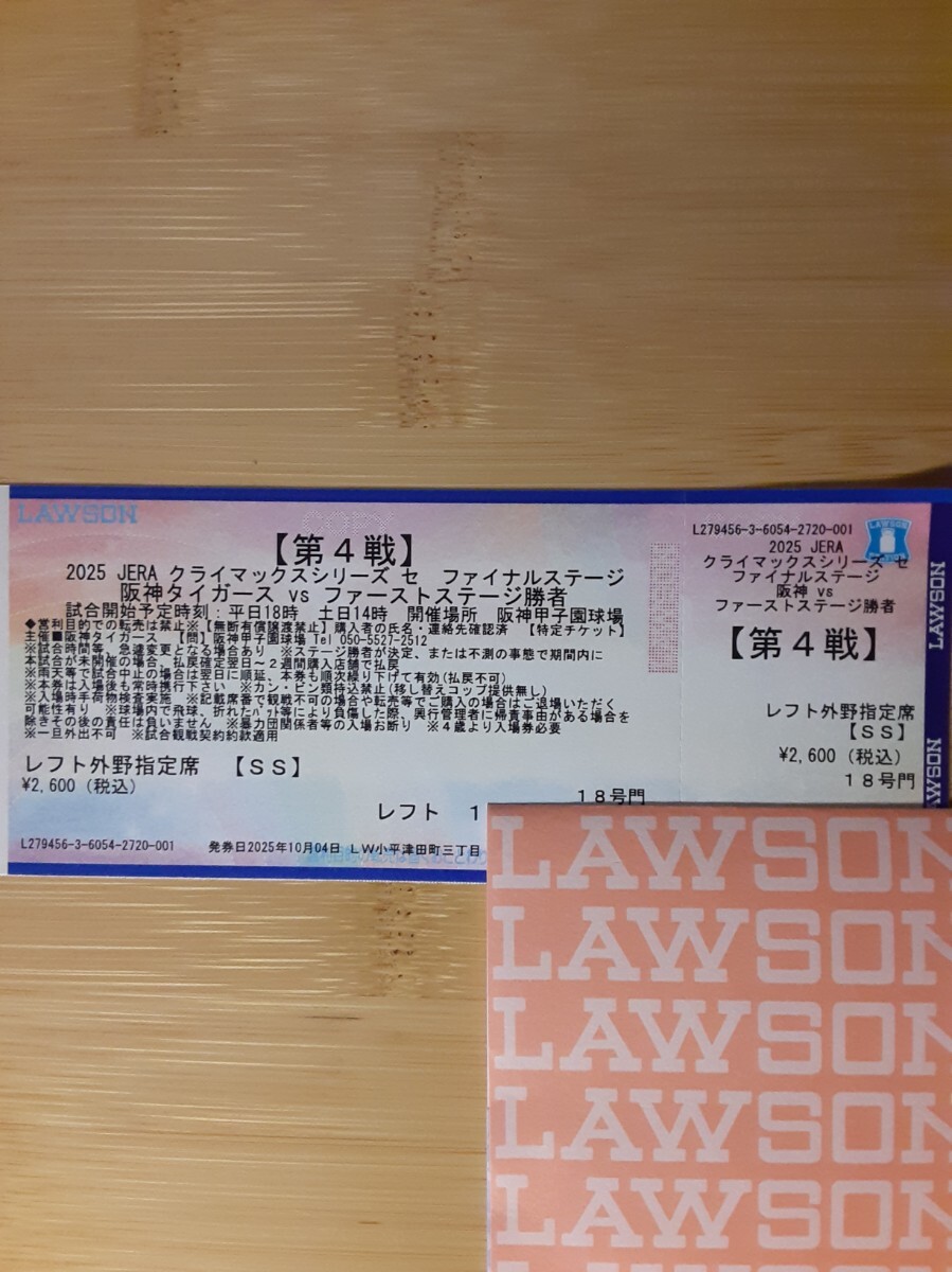 クライマックスシリーズ ファイナルステージ第4戦 レフト外野指定席(15列~17列、221番~235番、通路側2番目)1枚の出品です。