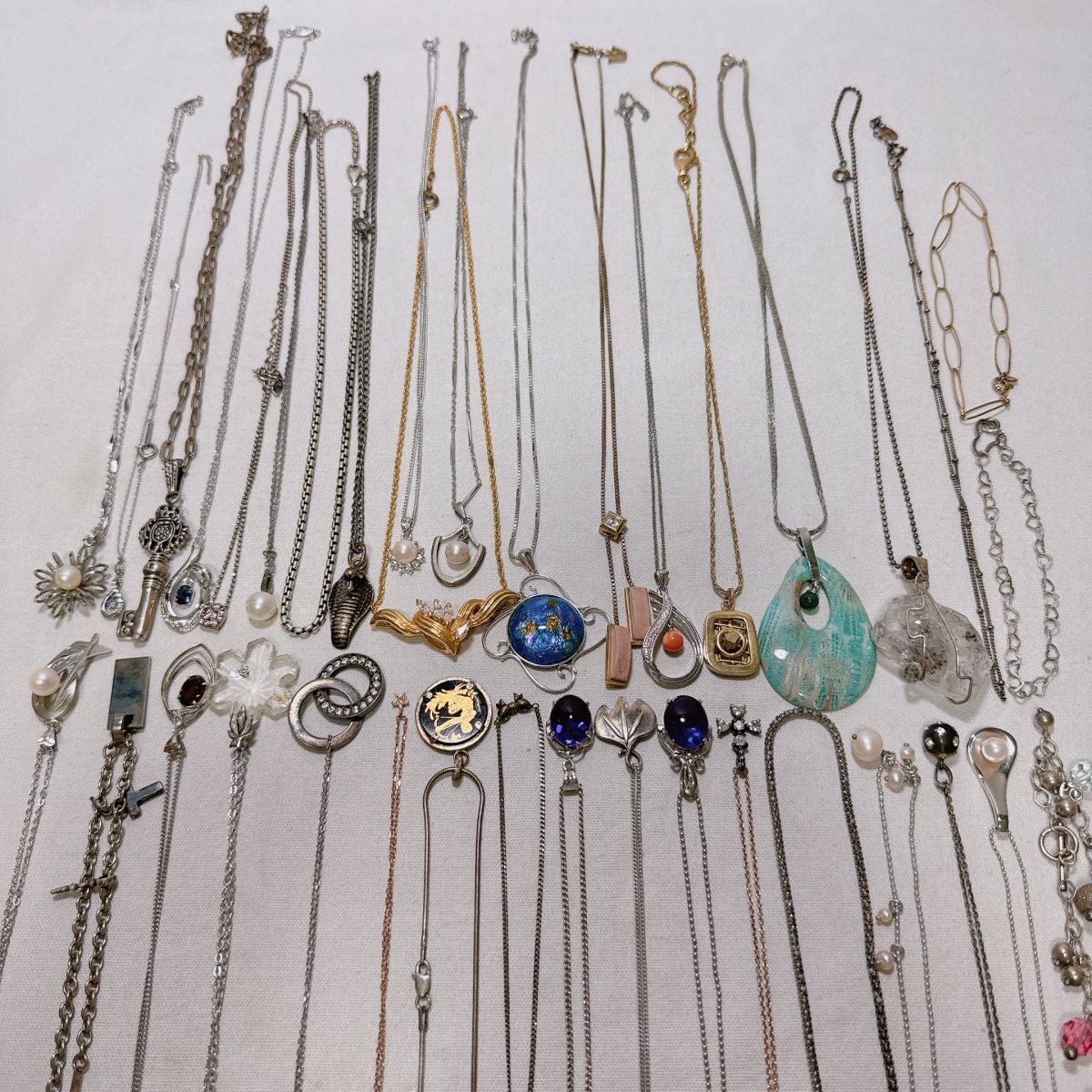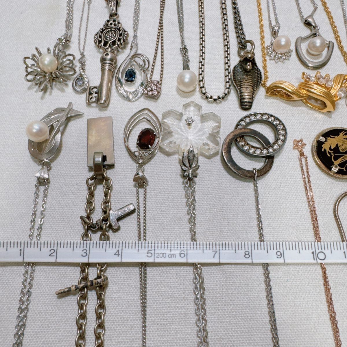 DY シルバー チェーン アクセサリー 38点 約234g まとめ 全て silver 925 STERLING 等 刻印有 ネックレス ペンダント パール 天然石 銀製品