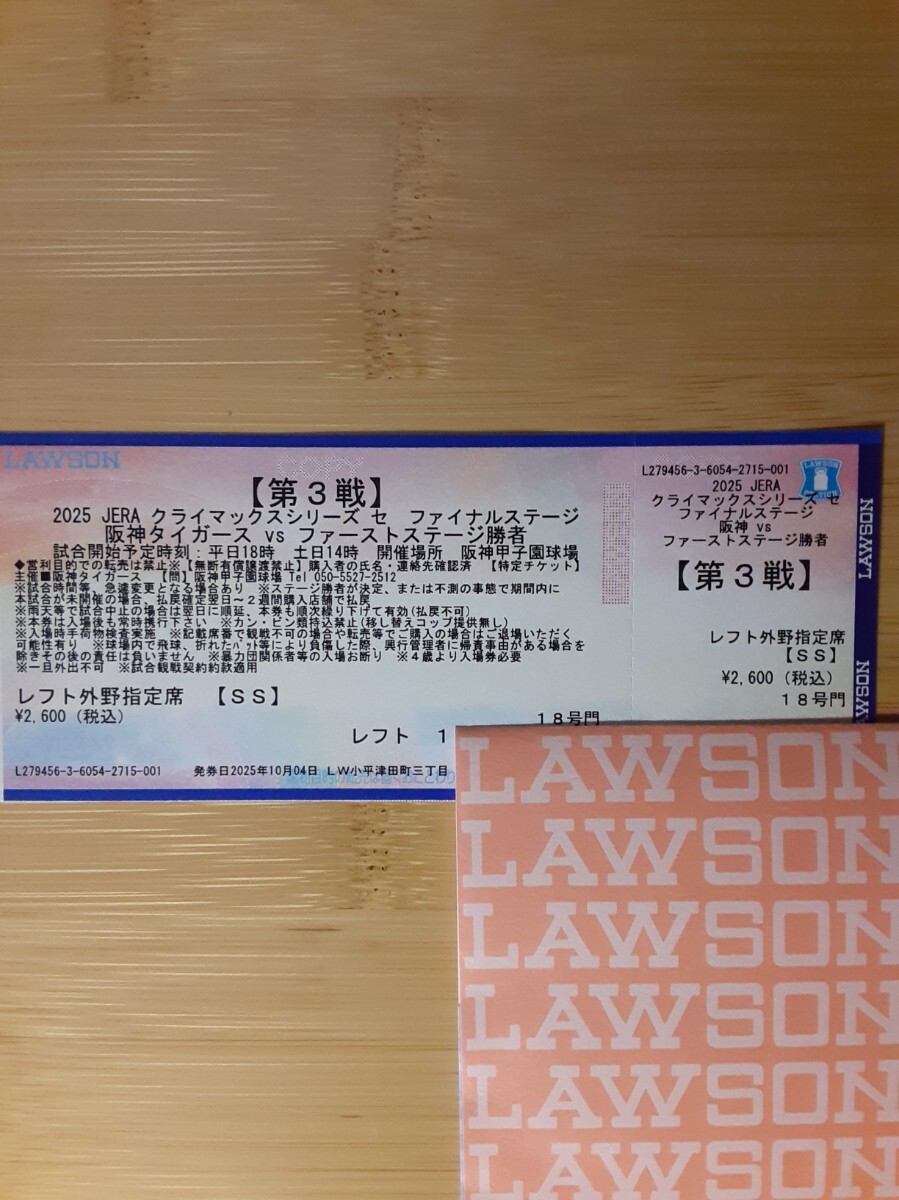 自分が阪神タイガースを応援するために手配したのですが、予期せぬ出張が入ってしまい泣く泣く惜譲致します。営利目的ではありませんので定価からの出品となります。