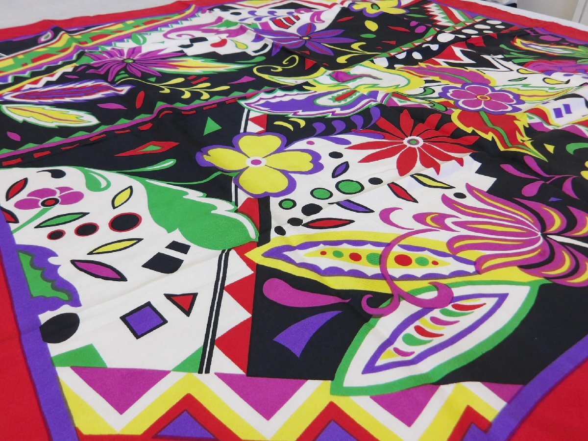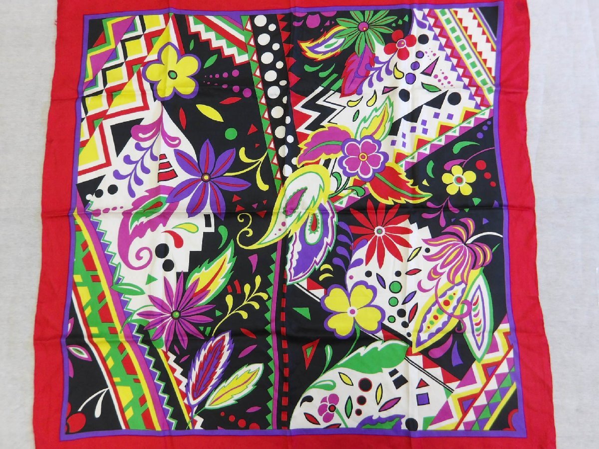 〔楽布〕P40484 シルク スカーフ サイケデリック 89cm×86cm k