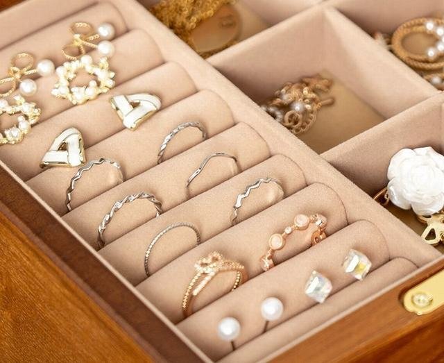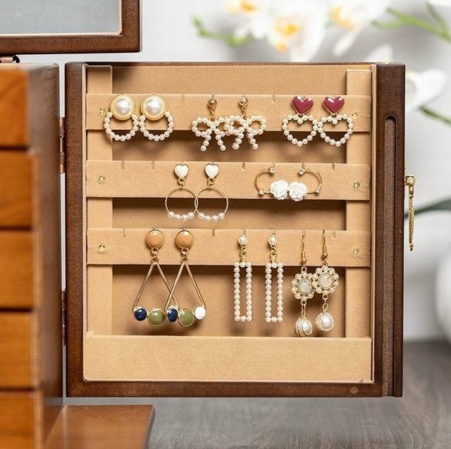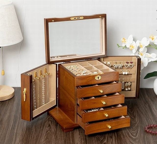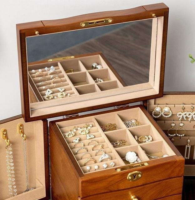 【キーワード】木製 ジュエリーボックス 高級感 宝石箱 収納 鏡付き 5段収納 大容量 指輪 保管 携帯 小物入れ ジュエリーケース