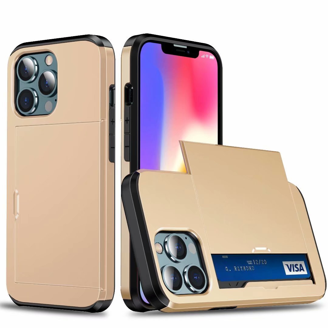iPhone 12 Pro Max用 ケース ゴールド 背面カバー カード収納 金色 カードホルダー