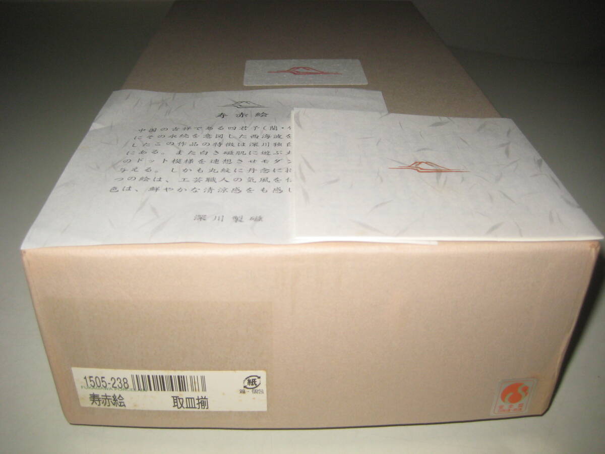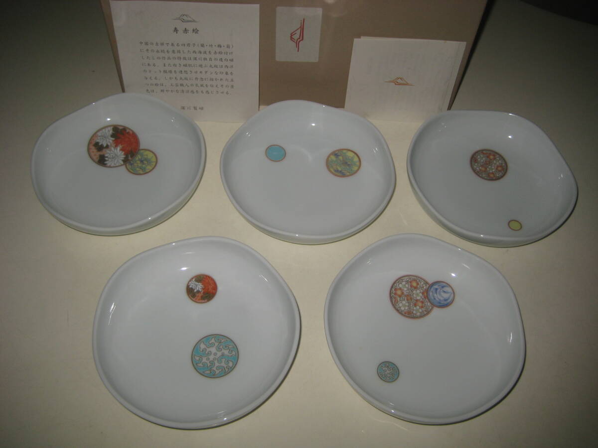深川製磁 寿赤絵 取皿揃 絵変り 取皿 5枚セット 箱付 1505ー238 吉祥四君子 (蘭・竹・梅・菊)