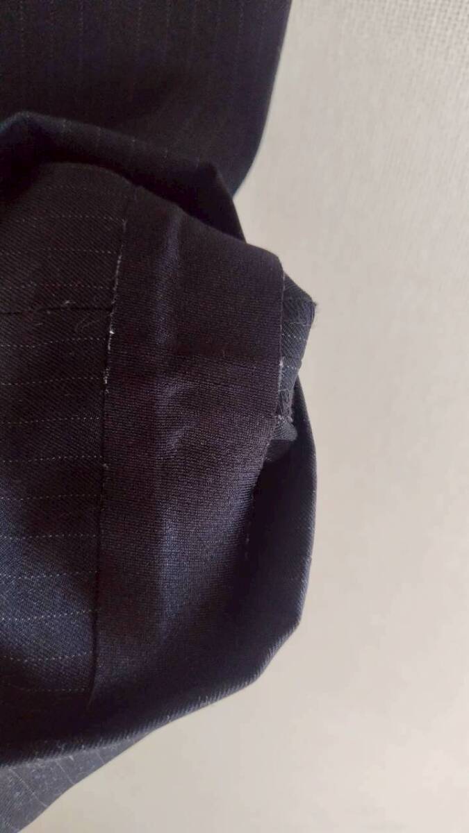 裾は裾上げテープとアイロンで調整しており、股下は約55cmです。