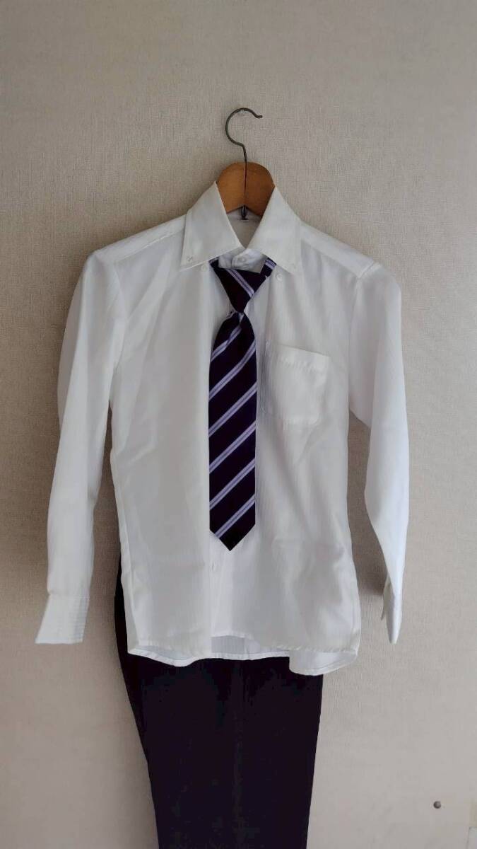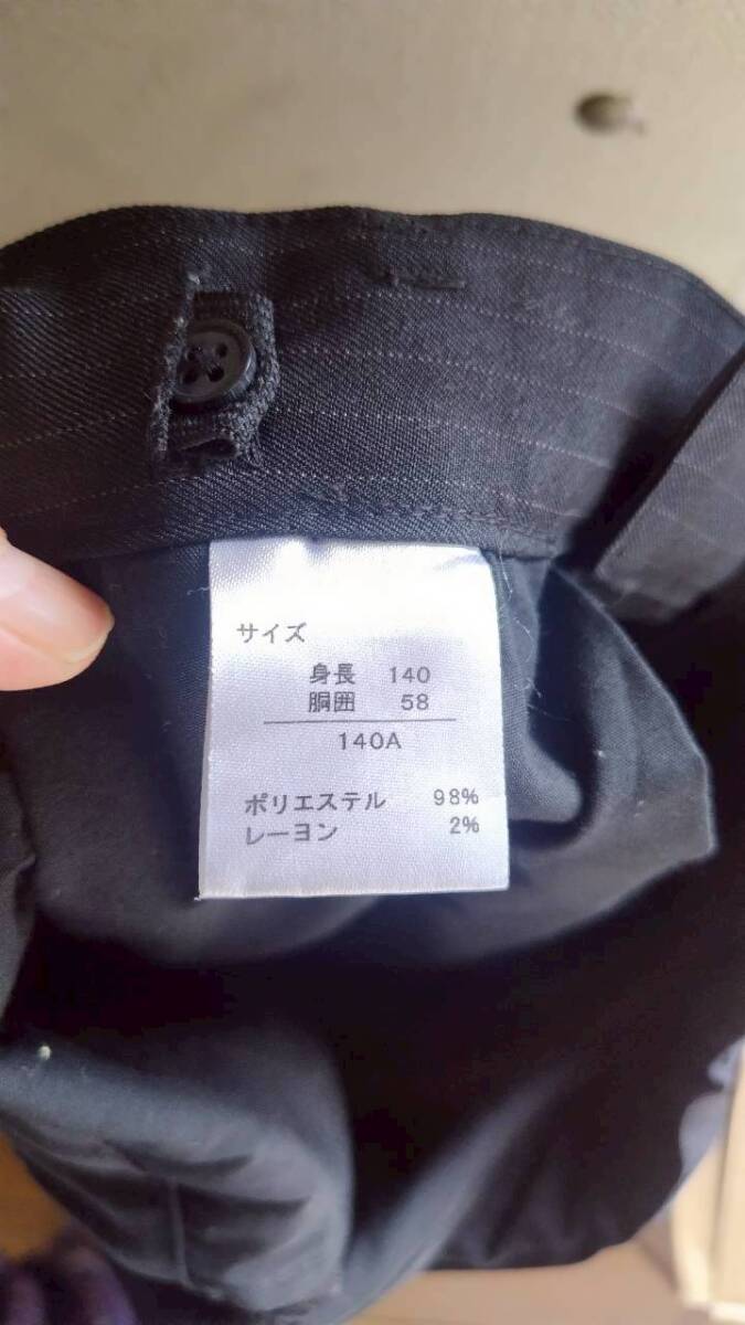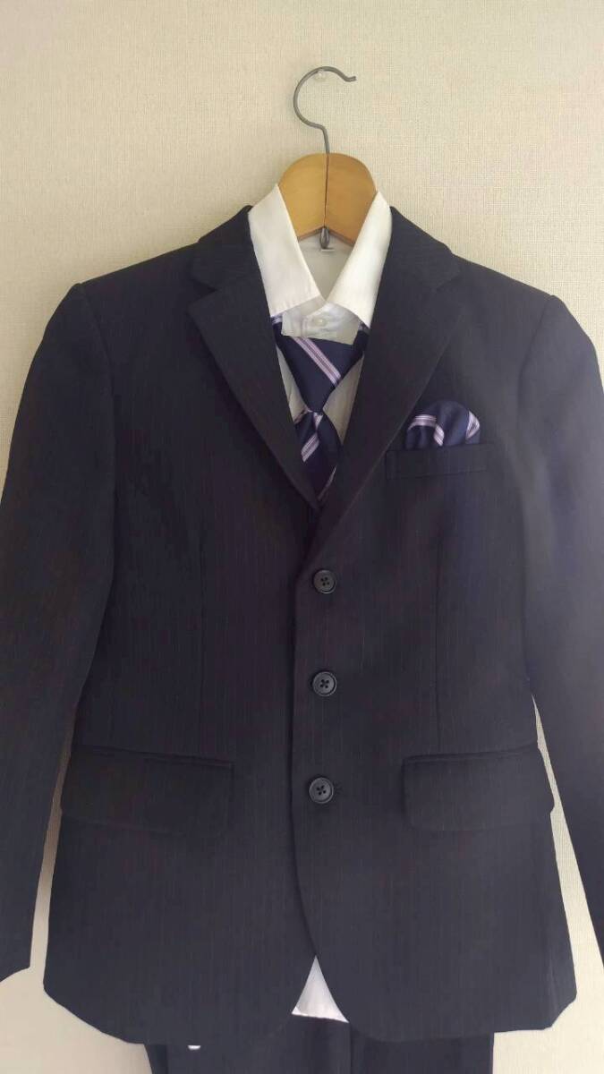 ★送料無料★【子供 キッズ 140 スーツ上下/Yシャツ/ネクタイ/チーフ セット 股下55㎝裾上げ済 中古】