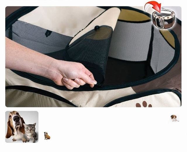 *商品説明:折りたたみ式,8面サークル,600Dオクスフォード/PVCネットメッシュ素材 *使用時のサイズと収納時のサイズは写真をご参照ください *アウトドアなどの屋外使用や、室内犬用のプレイスペースにオススメ! 折りたたんで簡単に収納できるから持ち運びも簡単です *飛び出し防止のメッシュ屋根付き!ファスナーで取り外しができるので、使用しない時は外しておけます。折りたたみペットサークルはこんな時に便利です。 *女性や年配の方も簡単に持ち運び,組み立てができる折りたたみ式タイプなので、急な来客時用として、キャンプなどのアウトドアの時などにオススメなアイテムです 使わない時は折りたたんで収納 *折りたたみ式のペットサークルなので、収納時も場所をとりません。 *ペットハウスの四周にメッシュ窓が付いてありますので、通気性抜群,ペットケージにいるペットさんが苦しくことがありません。快適なアウトドア時間過ごせます。
