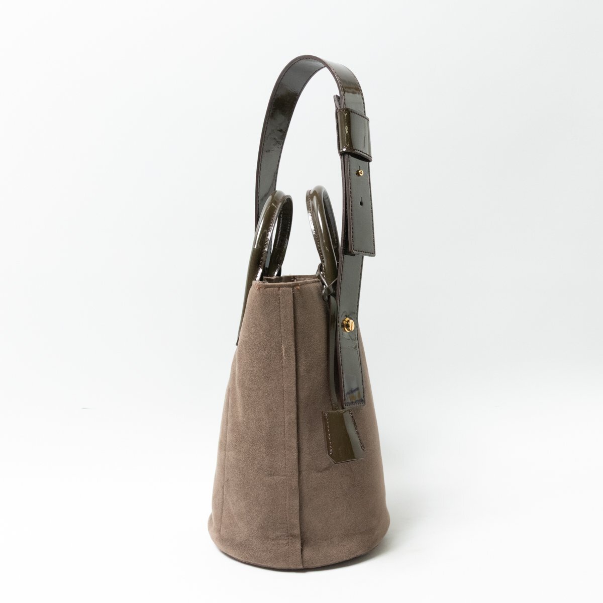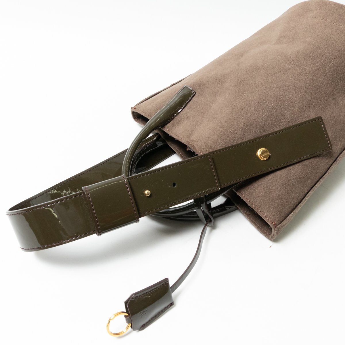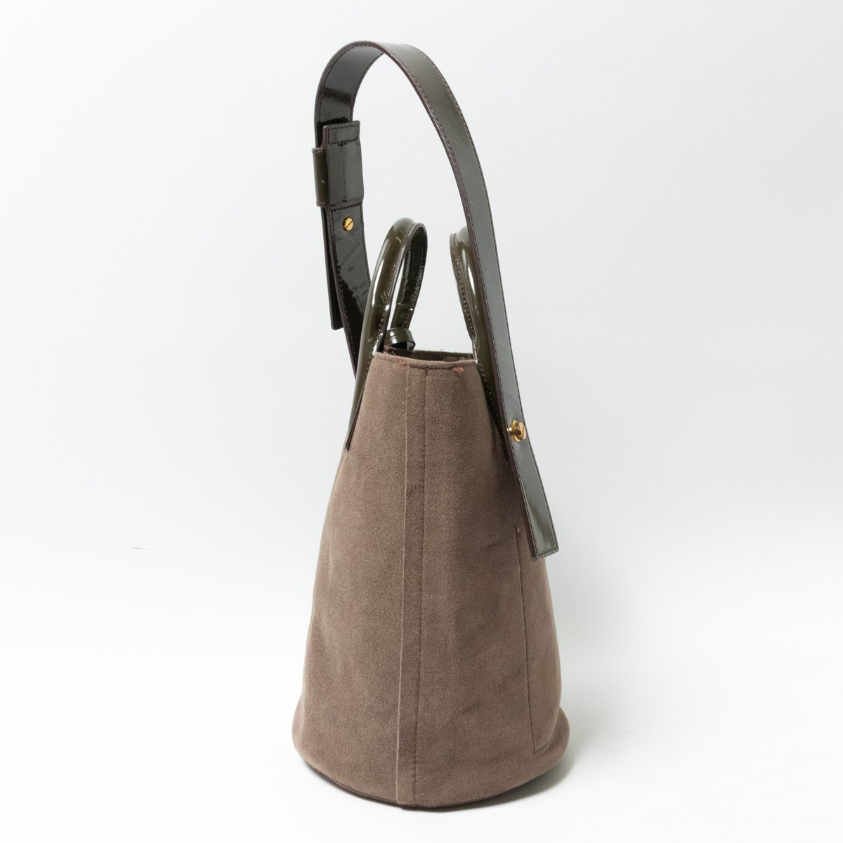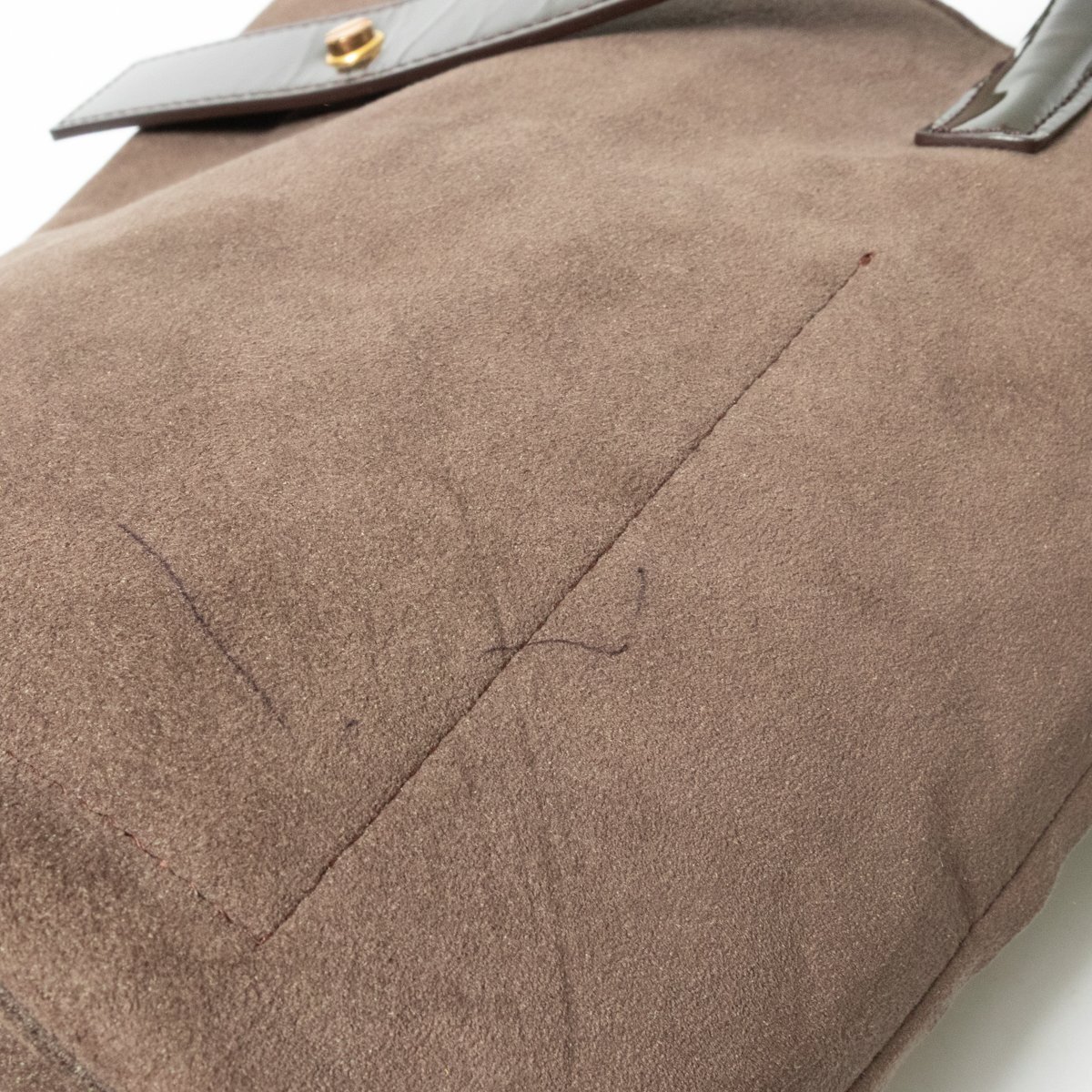 状態 | C:型崩れ、マイクロスエードにシワ・スレ・開口部にやや毛羽立ち・背面右下にボールペン汚れ、持ち手にスレ、ショルダーシワ・スレ・くすみ・若干の薄汚れ、金具にスレやくすみがございます。 |