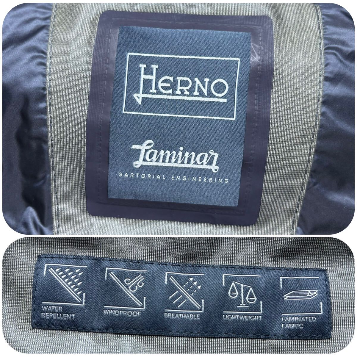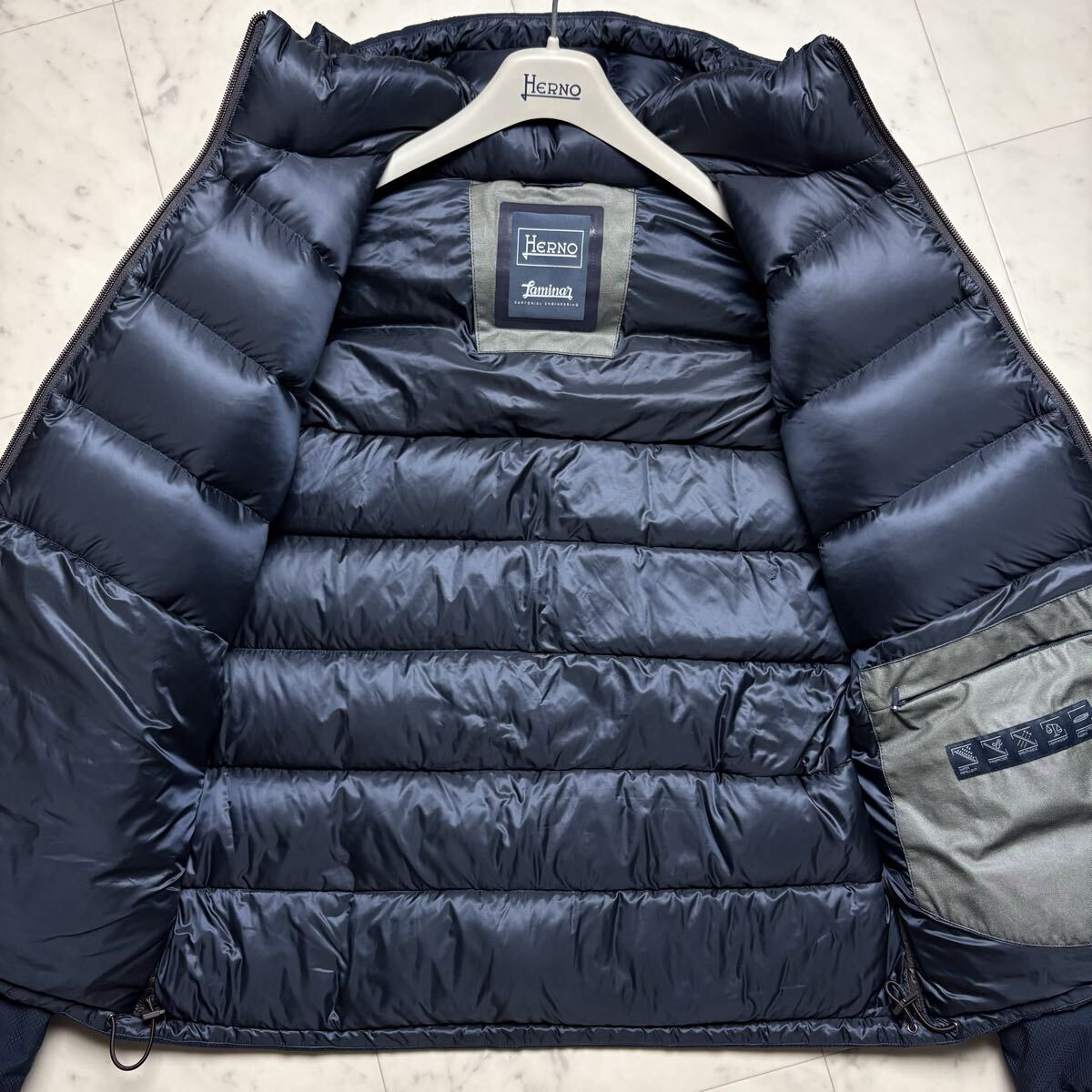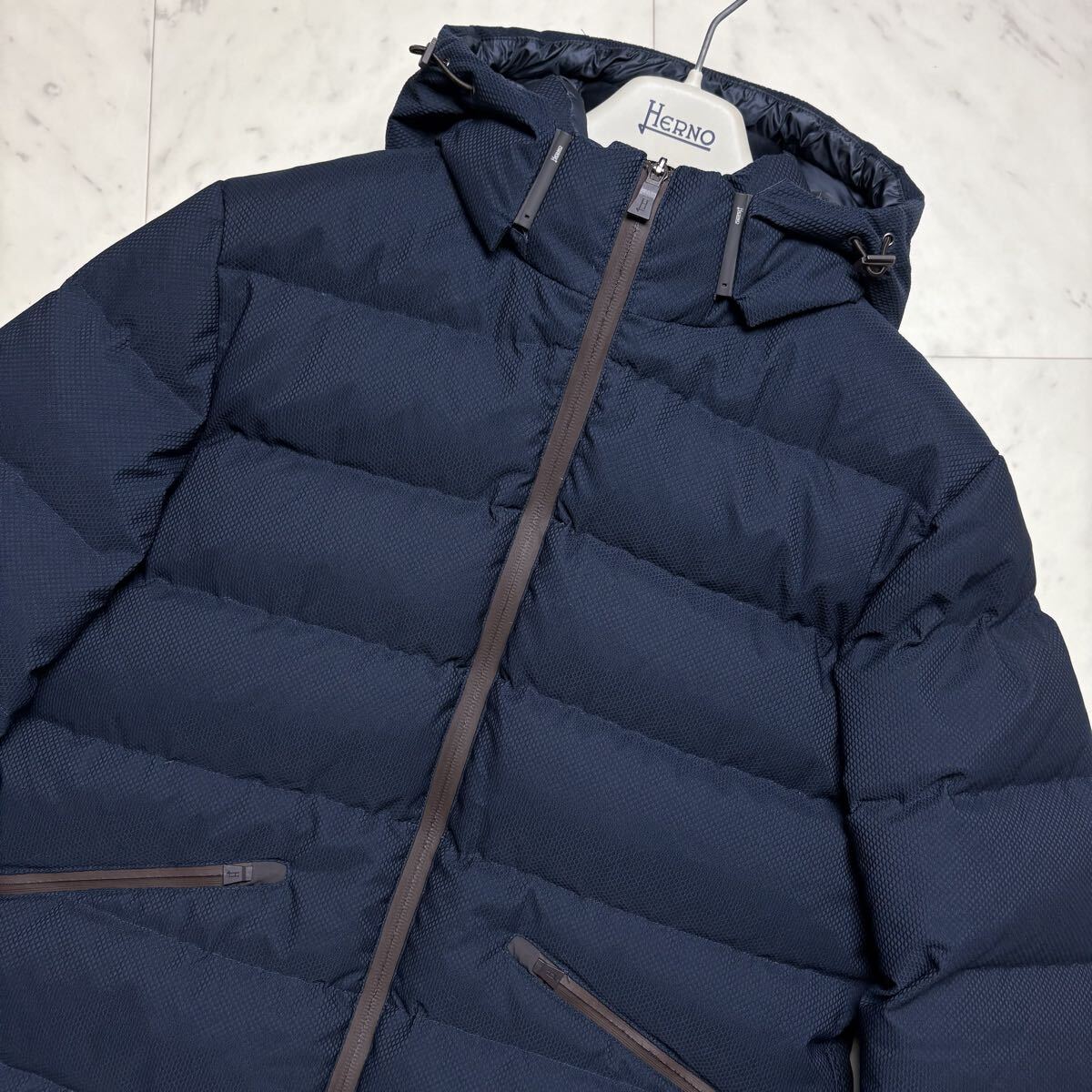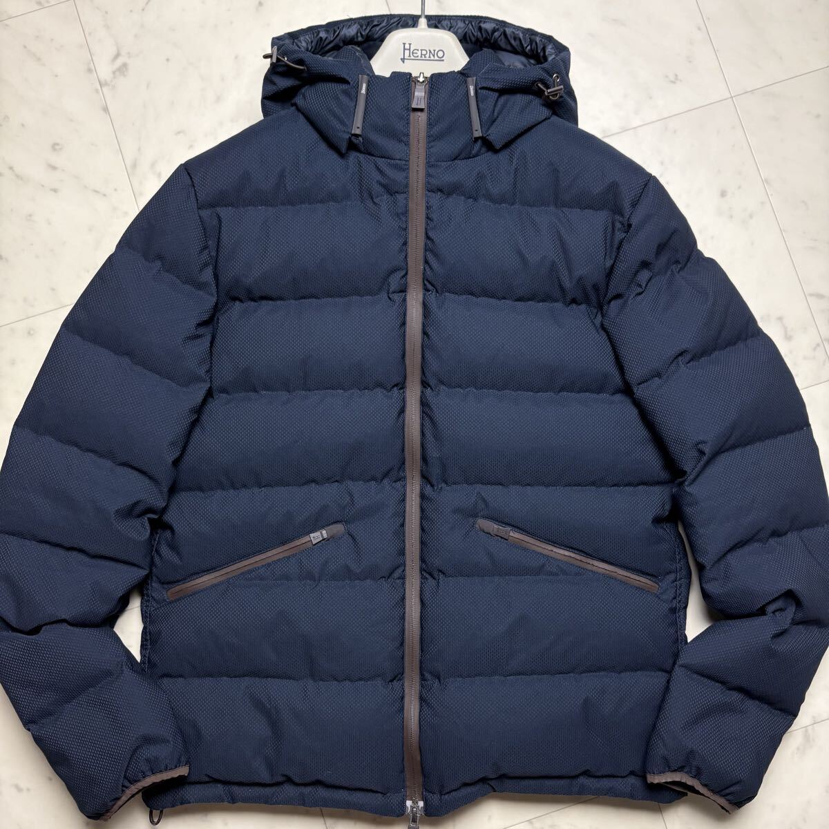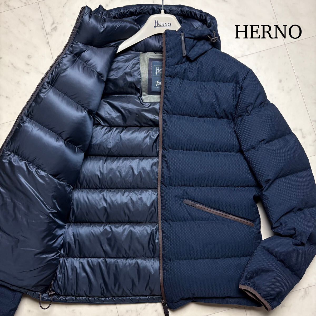 美品/Lサイズ★ ヘルノ HERNO ラミナー Laminar ダウンジャケット パーカー 着脱フード ブルゾン アウター 撥水加工 軽量 ネイビー メンズ