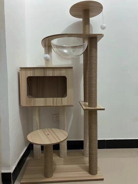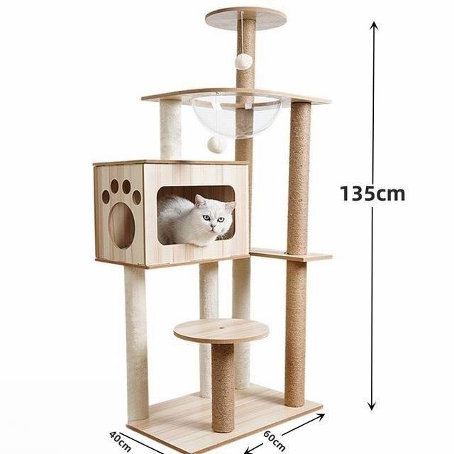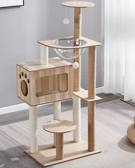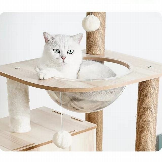 キャットタワー 透明宇宙船 頑丈 据え置き木製 麻紐 爪とぎボール 猫ベッド 大型 木目調 多頭飼い 据え置き型 爪とぎ 猫タワー 爪研ぎ