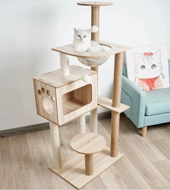 据え置き型のMDF木製キャットタワーは頑丈で安定性もあるので多頭飼い大型猫にもおススメです。