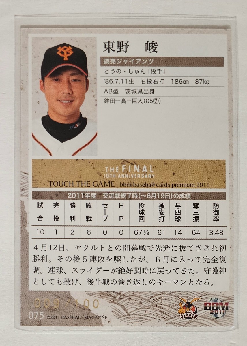 2011年BBM タッチザゲーム 青箔100枚パラレル 東野峻 巨人 ジャイアンツ