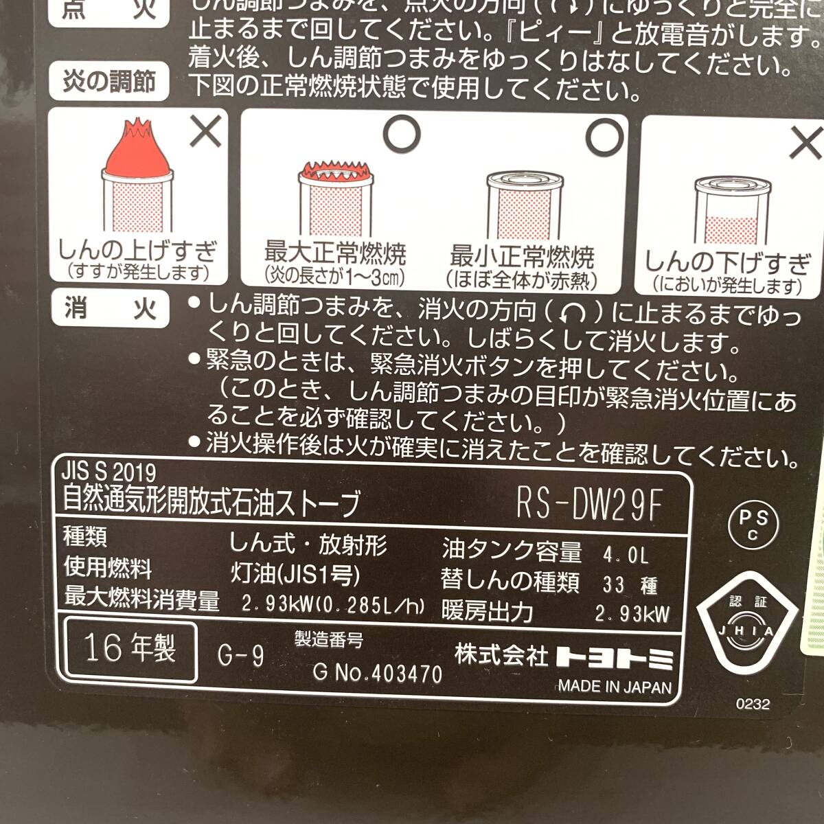 25C468_ジA TOYOTOMI トヨトミ 開放式石油ストーブ RS-DW29F 2016年製 暖房器具 ストーブ 非常時対応 現状品 中古